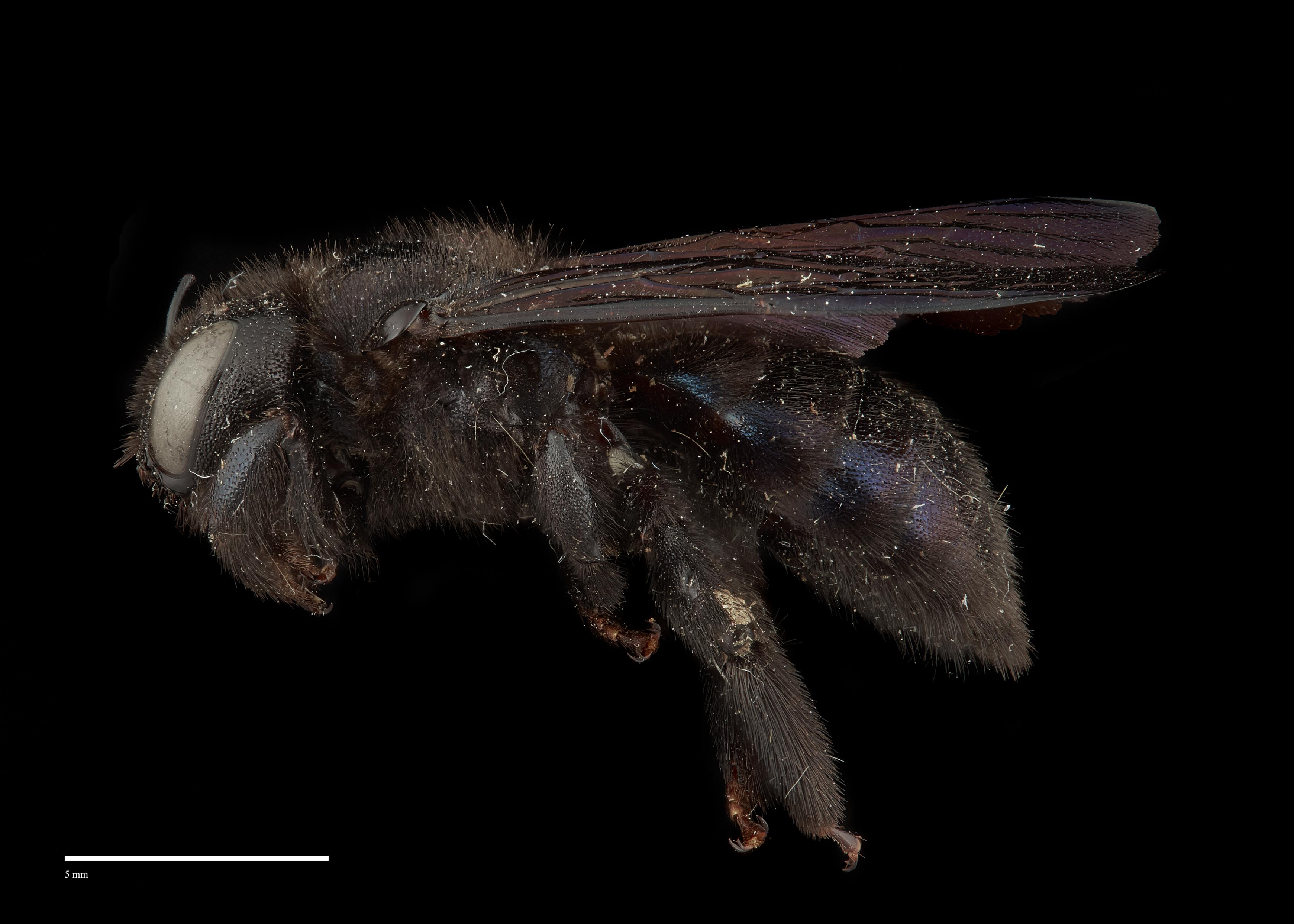 . Their wings are a transparent dark brown with a strong violet iridescent color (Hurd and Moure 1963Hurd and Moure 1963: