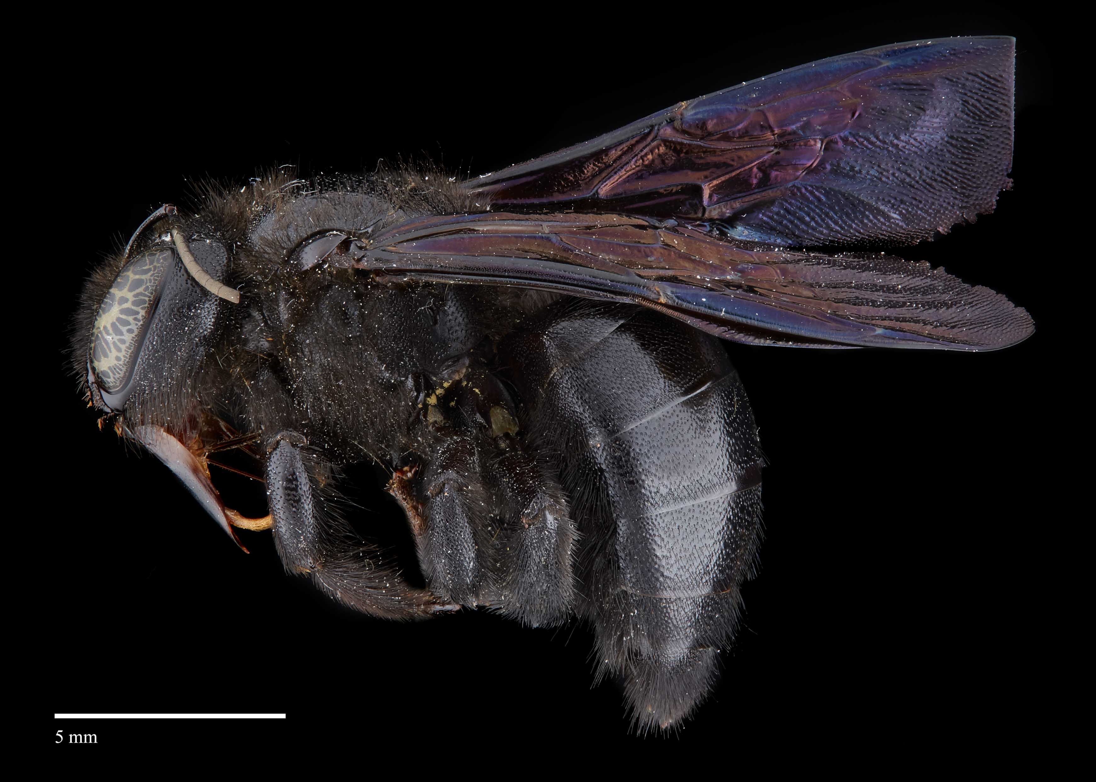 Xylocopa (Gnathoxylocopa) is monotypic and are small bees, 10 – 15 mm in length, semi-slender, with black, weakly metallic, integumentintegument: