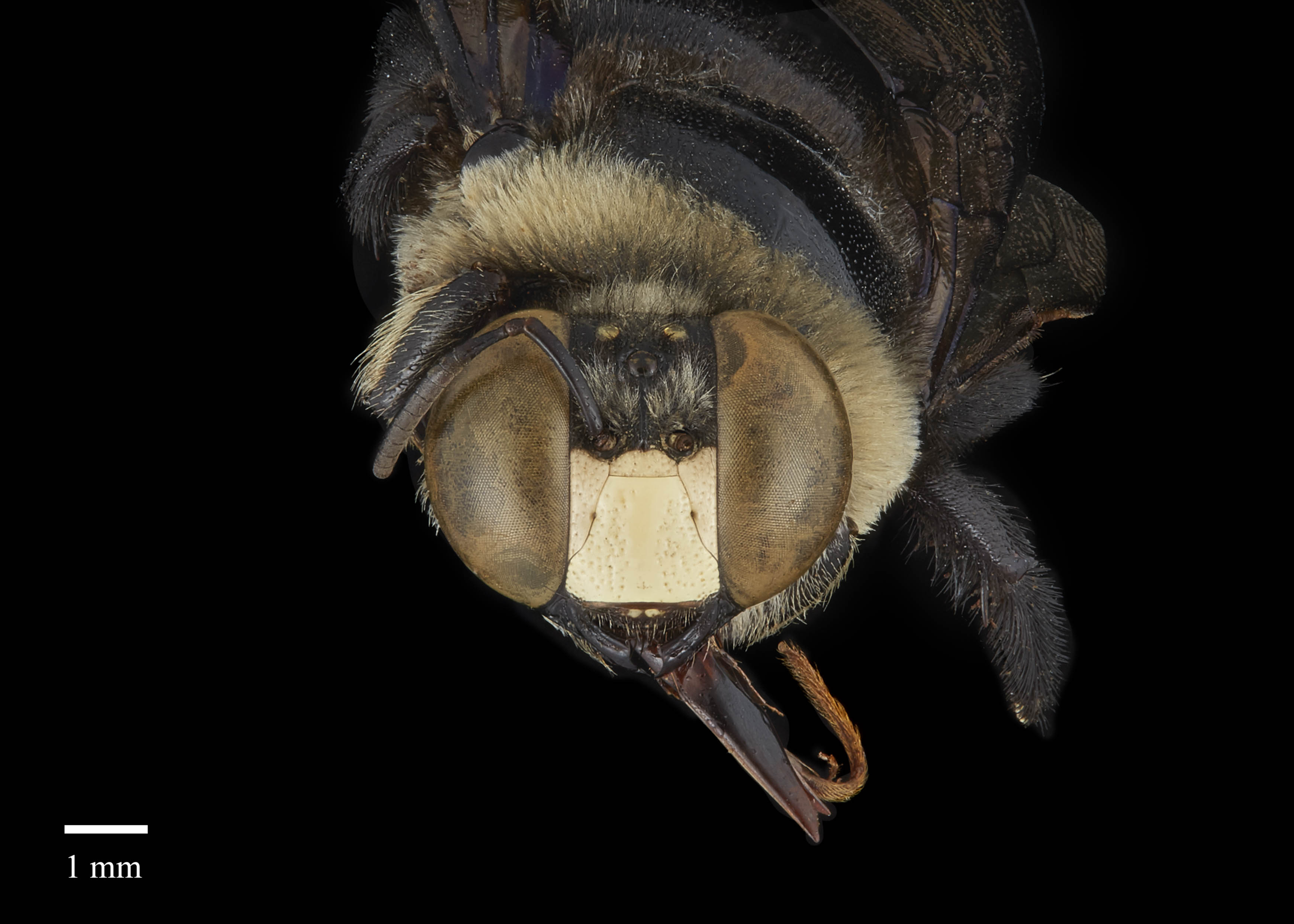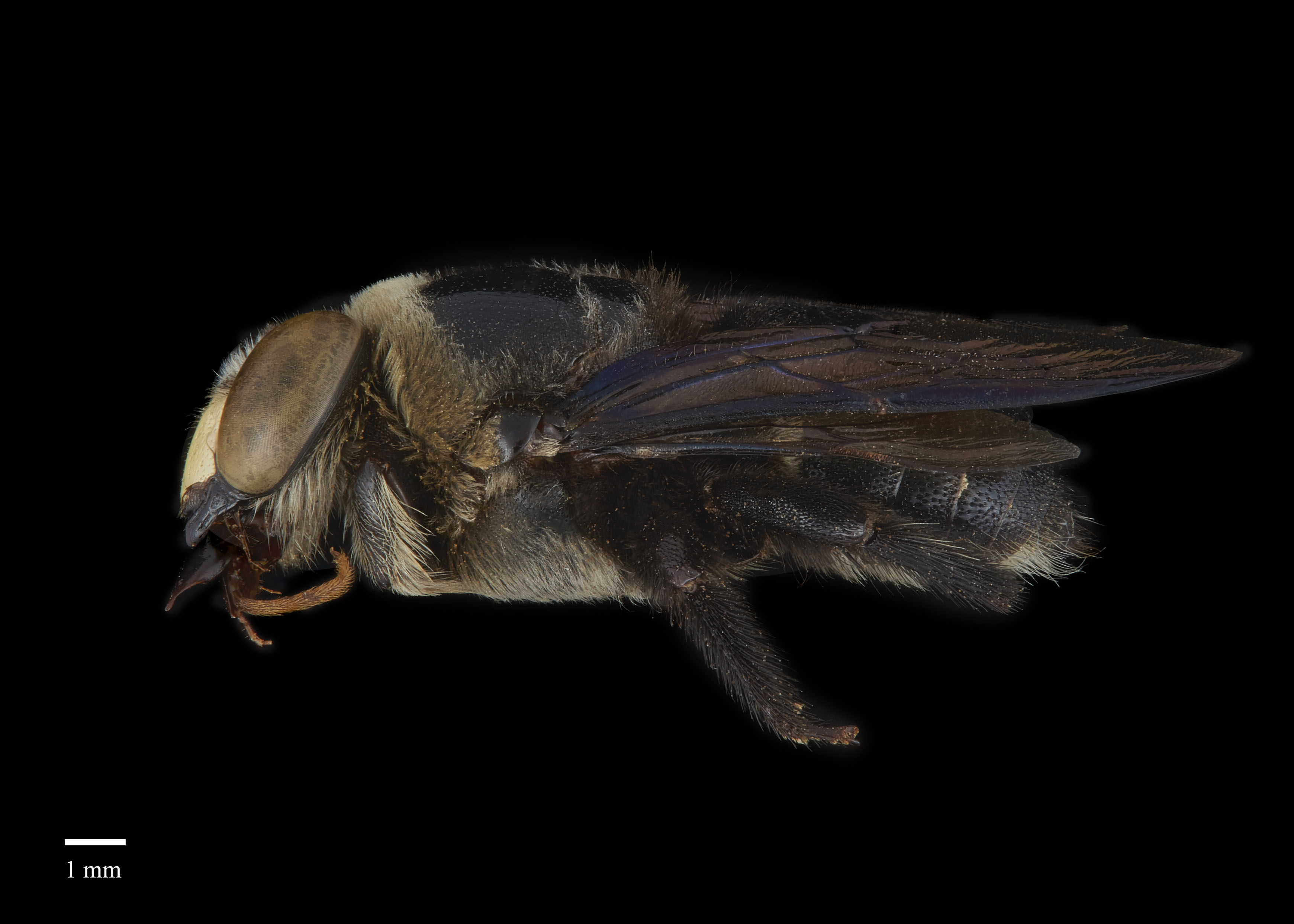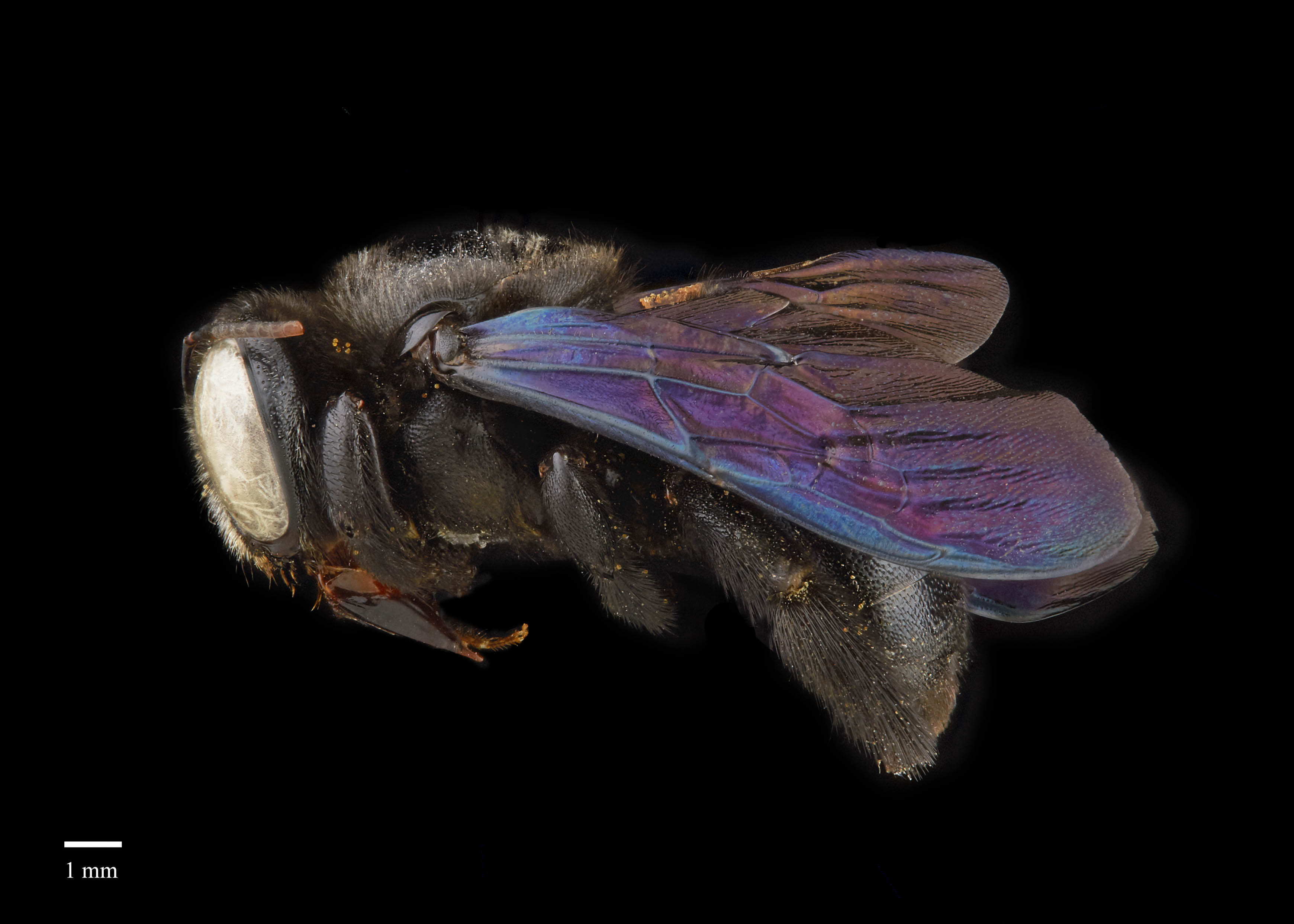 but often have at least some pale hair on the head and thorax. The wings are a medium brown and are moderately iridescent (Hurd and Moure 1963Hurd and Moure 1963: