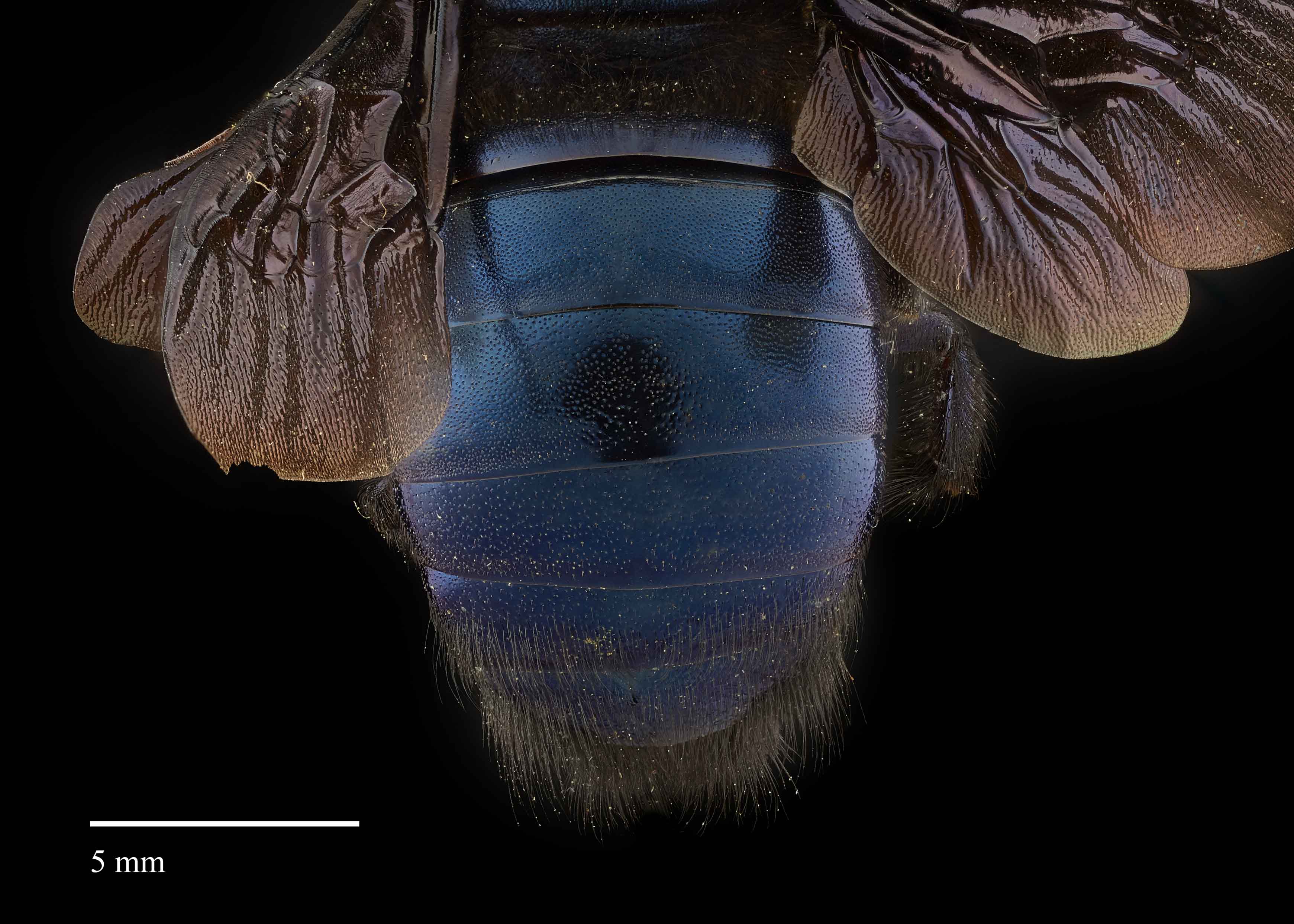 on its thorax and upper abdomen. Their wings range from light brown to dark brown and vary in their amount of iridescence (