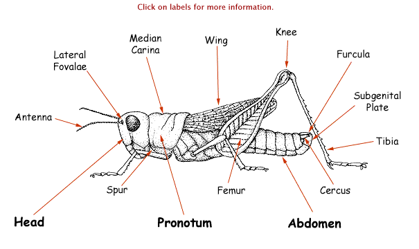 Male grasshoppers are distinguishable by the cerci, furcula, subgenital and supraanal plates.