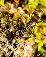 Paratrechina longicornis, commonly known as the Black Crazy Ant or the Long-horn Ant, is a relatively small, dark colored species with extraordinarily long appendages, rows of long thick white hairs, and bulging eyes that break the outline of the head. Its gaster, like all formicines, is armed with an acidopore. In the field it can often be recognized by the rapid and erratic movement for which it is called a "crazy" ant (see video). It recruits strongly to baits and food resources with long foraging lines. The extraordinary length of the antennal scapes, pilosity, dark color, small size and foraging behavior make this a relatively easy ant to identify in the field.