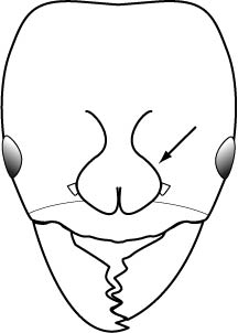| Clypeus. The most anterior section of the head adjacent to the mandibles. The anterior margin of the clypeus can be informative for species diagnosis. In particular, look for whether the anterior margin is indented, flat, convex or some specialized arrangement.