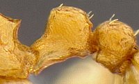 | Antennal club. The terminal segments of the funiculus that appear enlarged relative to the other segments. The antennal clubs referred to in PIAkey are restricted to the Myrmicinae, and are composed of either two or three segments.