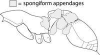 | Spongiform appendages. Sponge-like structures that occur on the body parts (particularly the propodeum and waist) of some ant species. Spongiform appendages are prevelant among ants in the tribe Dacetini, including the genera Pyramica and Strumigenys.