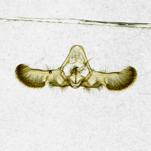 Place the clean genitalia into a small petri dish with 100% ethanol. Using forceps, gently spread the valvae and place the