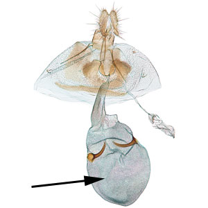 gnathos: a narrow bandlike structure that joins the posterolateral edges of the tegumen and supports the anal tube