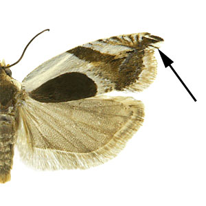 dorsal strigulae: semirectangular pale marks or lines extending from the dorsal margin; usually expressed in the Grapholitini