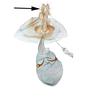 cucullus: the distal portion of the male valva