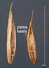 Palea slightly shorter than lemma, 2-veined, veins keeled, scabrous, apex bifid.