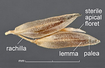 floret (with rachilla), caryopsis alone or ± sheathed by lemma