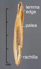 Caryopsis lanceolate, 1–2.5 mm long x 0.3–0.6 wide, brown, embryo <0.33 length of caryopsis, hilum round.