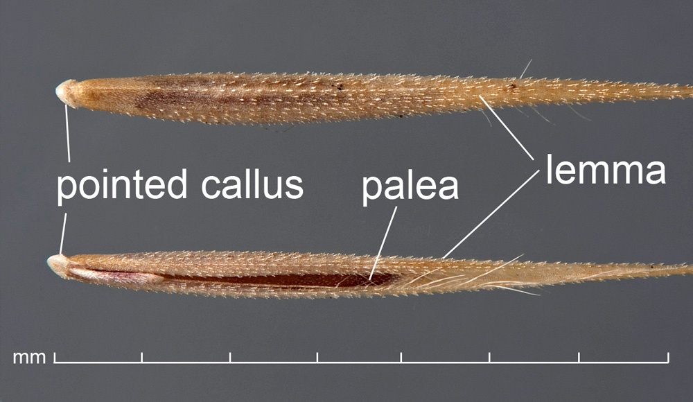 Fertile florets: rachilla persistent, scaberulous, 0.75–1(1.9) mm long, callus pointed, glabrous.