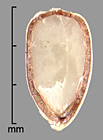 Fruit attachment scar near base but somewhat lateral (but not in hook-like depression), variable in shape and color, often brown, granular.