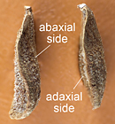Seed ovate in outline, strongly dorsiventrally compressed but often wavy (edges typically strongly curved towards adaxial side) instead of flat and with a distinct marginal rim (narrowly winged, wing wrinkled), 9–13 mm long x 6–8 mm wide x 1–2 mm thick, with a tuft of easily deciduous, whitish, silky hairs (coma) ca. 3 cm long at the apex. Raphe conspicuous on adaxial face as a central, longitudinal ridge extending from the apex to about 2/3 the length of the seed. Surface dull, granular, wrinkled, covered with patches of white to tawny hairs, general color orangish-brown, individual cells whitish to dark orangish-brown (mottled on the microscopic level).
