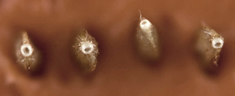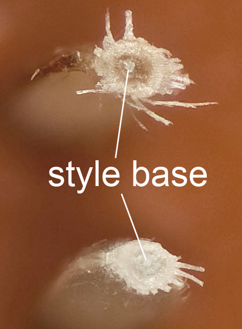 Fruit attachment scar basal, cup-like, whitish.
