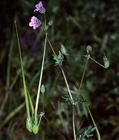 Mericarp body oblanceolate, 7–11 mm long, dark purple, with stiff, dense antrorse hairs and a pair of eglandular apical pits (transversely narrowed) subtended by (2)3–4 ridges (typically creating 2 furrows, which are glabrous). Mericarp beak 5–12 cm long (=length of style shaft when unwound), with short and long hair types, ± twisted in the lower portion and sharply curved near the middle to form a right angle.