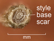 Style base missing or inconspicuous, apical scar 0.6–1 mm across.