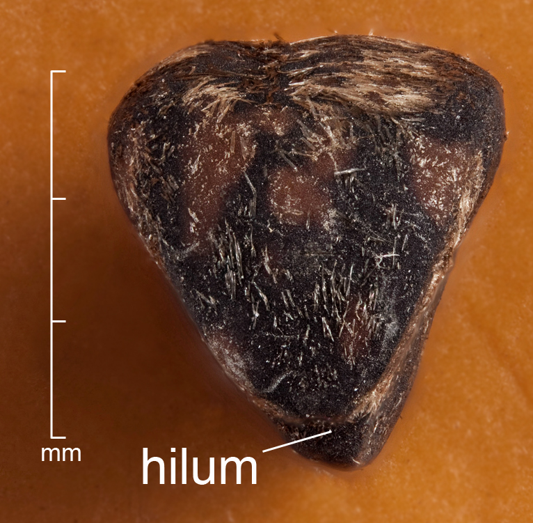 Hilum round to elliptic, 0.7–0.9 mm long, ± recessed, surrounded by a horseshoe-shaped ridge, ± hairy.