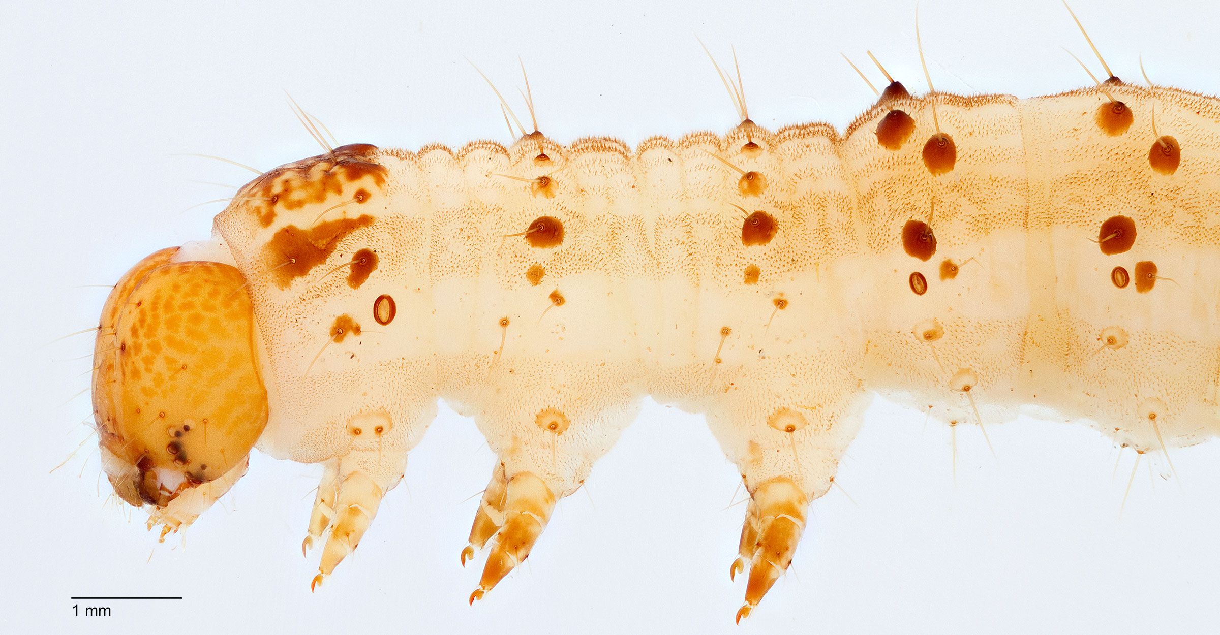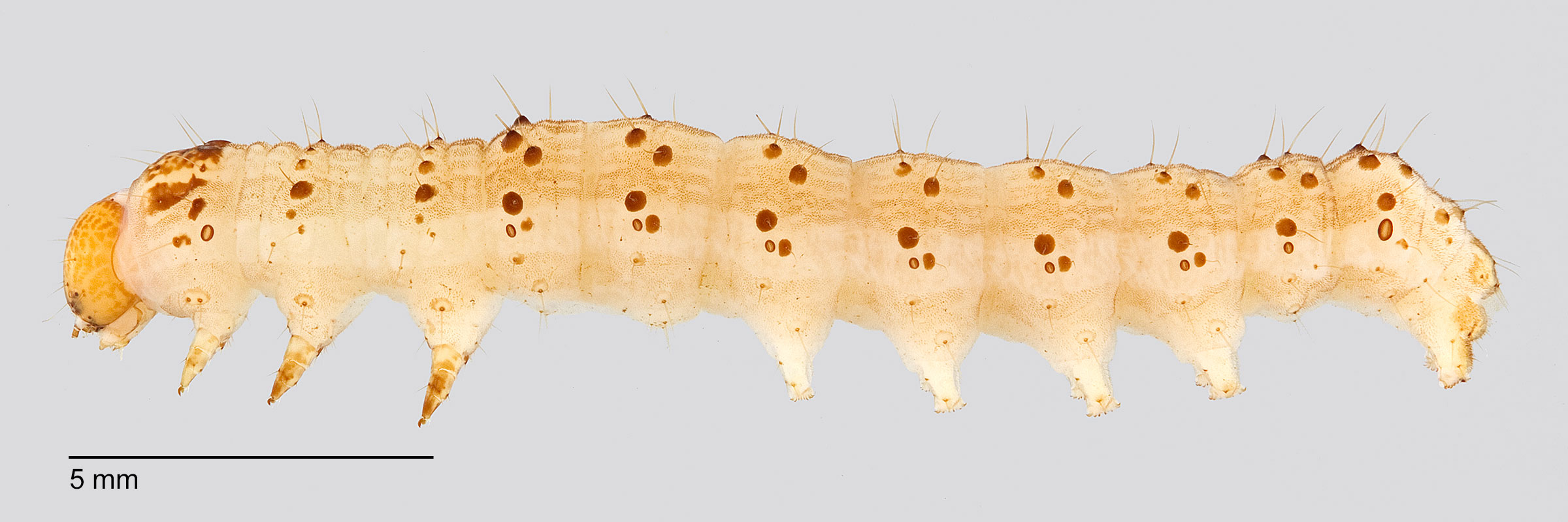 NOTE: Due to the continuing spread of H. armigera in South America, exercise caution when attempting identifications from that continent. There are no morphological characters to separate the larvaelarva: