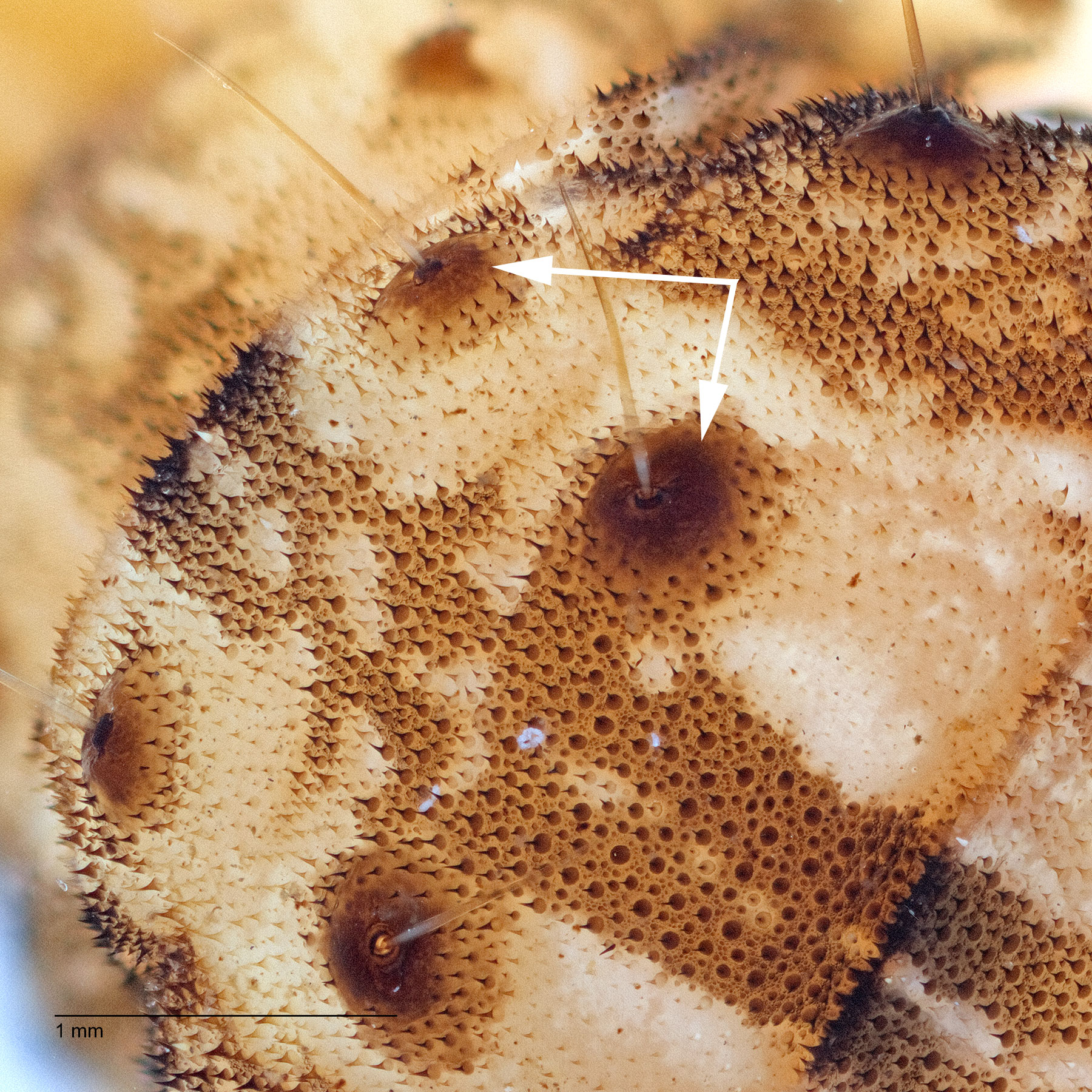 Boyer, W. P., J. G. Burleigh and M. L. Wall. 1977. Larval characters for separating bollworm and tobacco budworm. Annals of the Entomological Society of America 70: 5-6. suggested the most accurate way to evaluation the microspine character was to use the dorsal pinaculapinaculum: