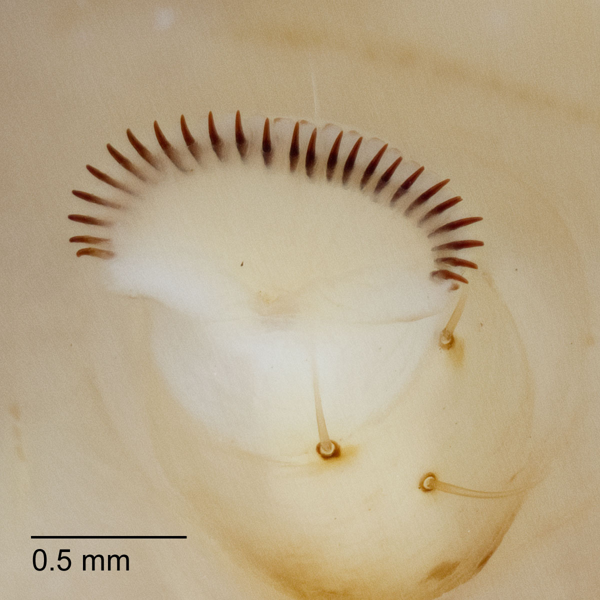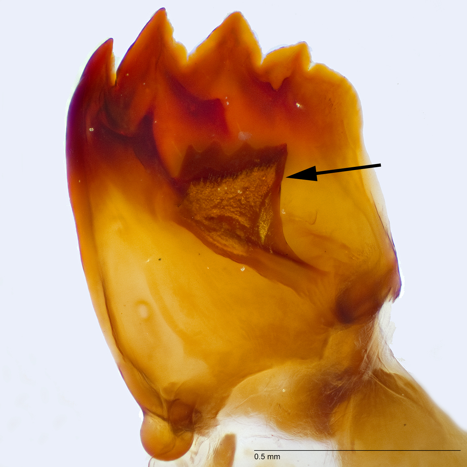 (= basal process, inner tooth) on the mandible and both SD setaeseta: