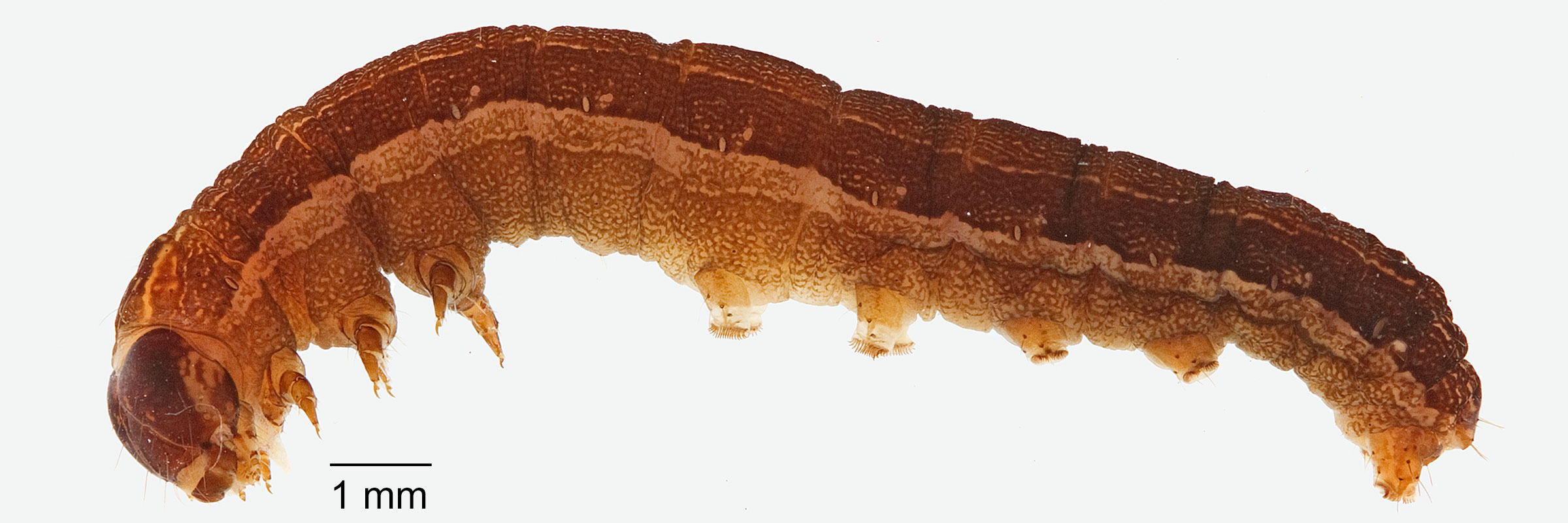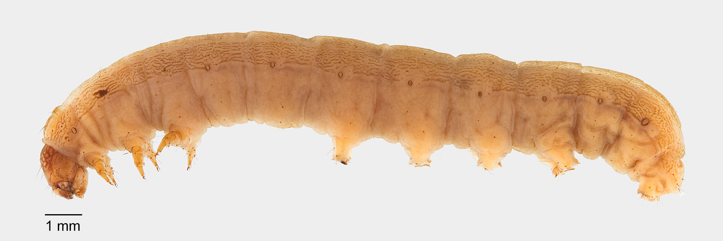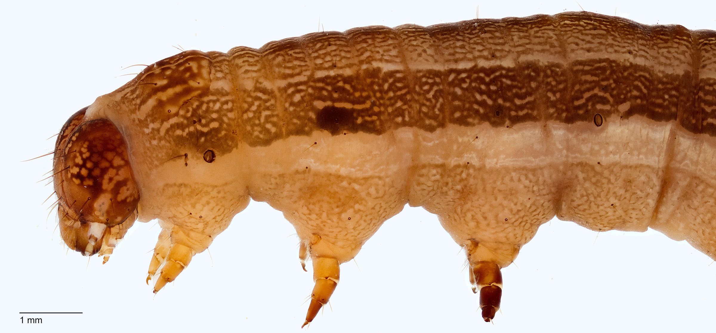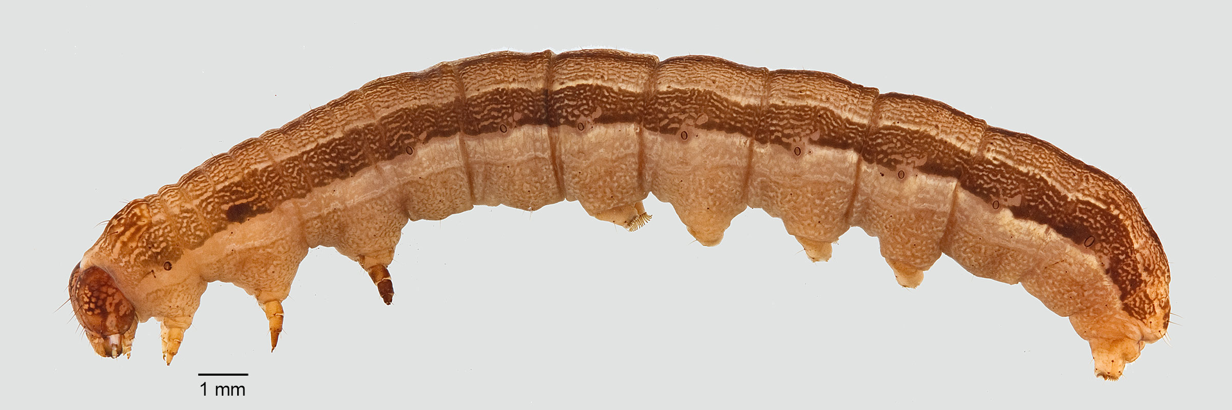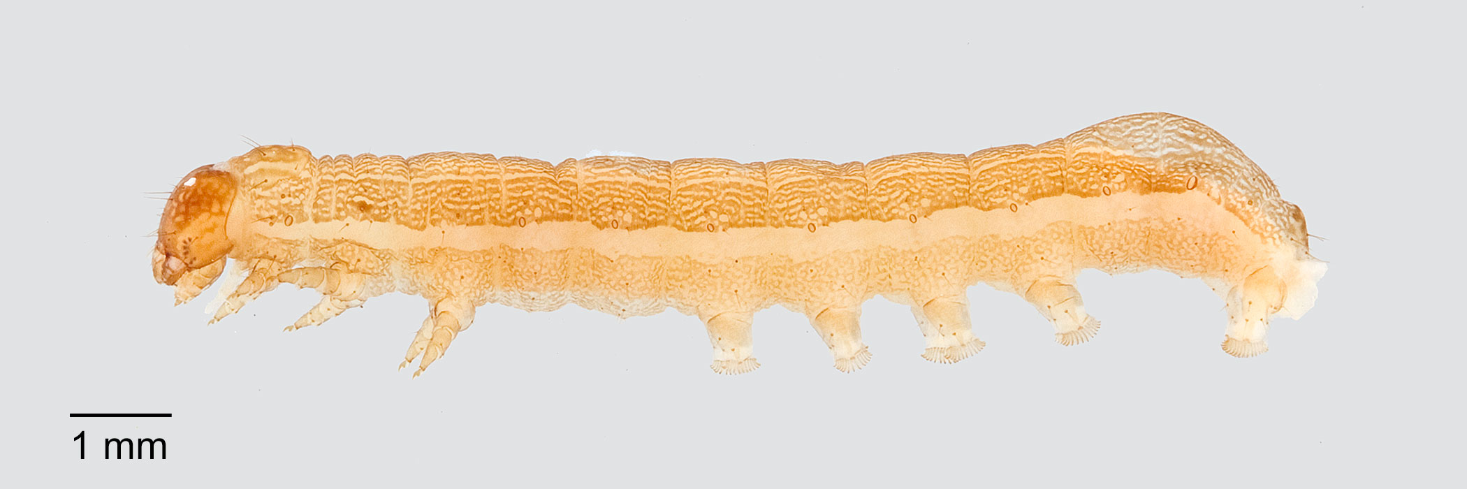 Passoa, S. 1991. Color identification of economically important Spodoptera larvae in Honduras. Insecta Mundi 5(3-4): 185-196.). The cuticle texture is smooth (at 20X).