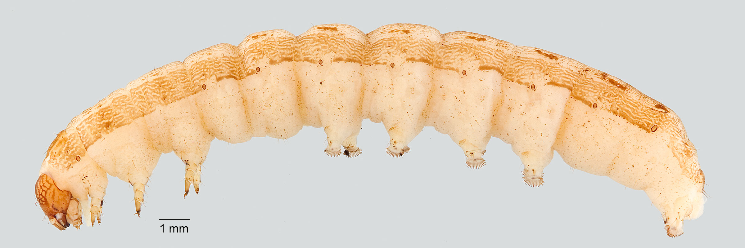 Weisman, D. M. 1986. Keys for the identification of some frequently intercepted lepidopterous larvae. U.S. Department of Agriculture, Animal and Plant Health Inspection Service, Plant Protection and Quarantine series 81-47. 64 pp.). In addition, the spinneretspinneret: