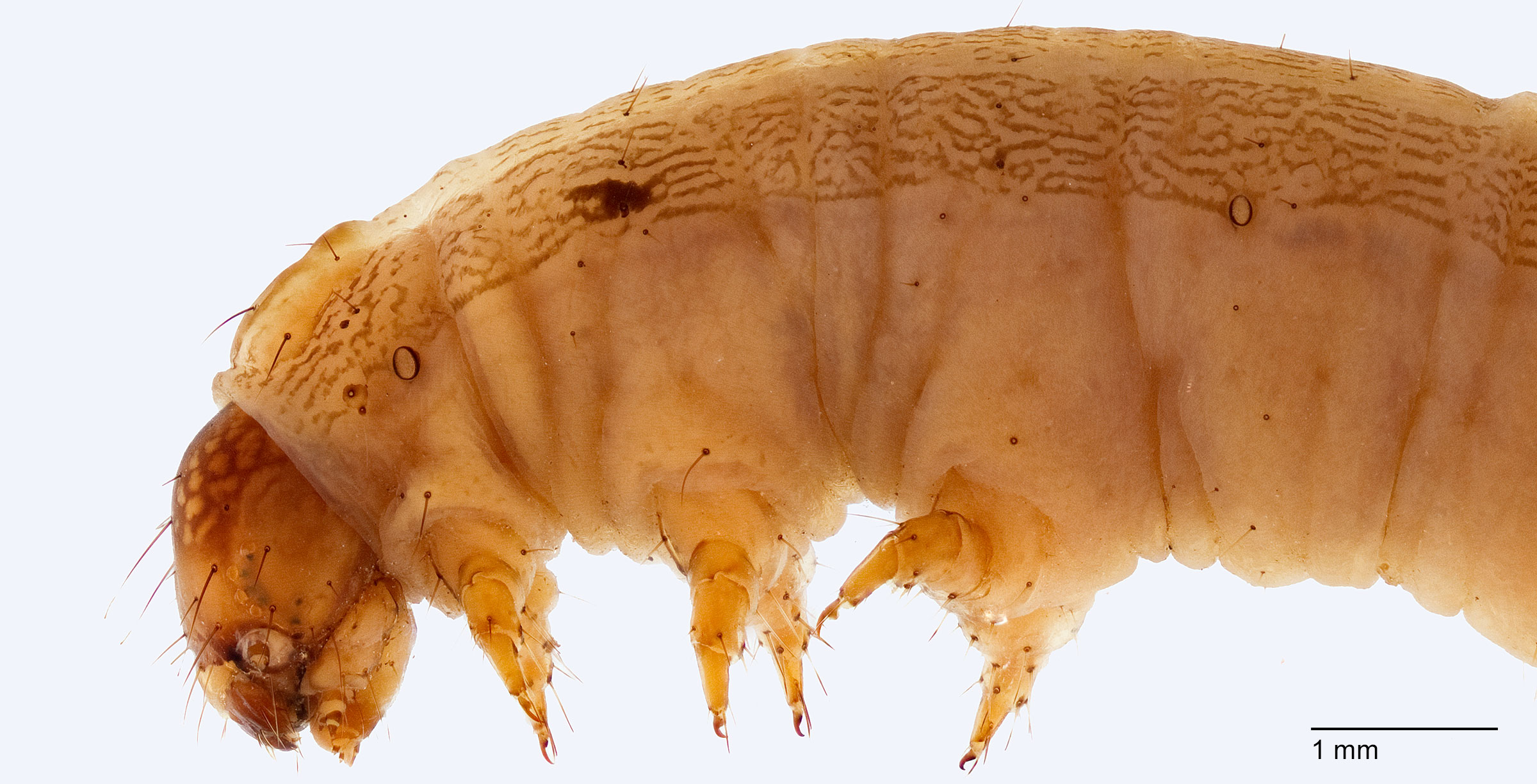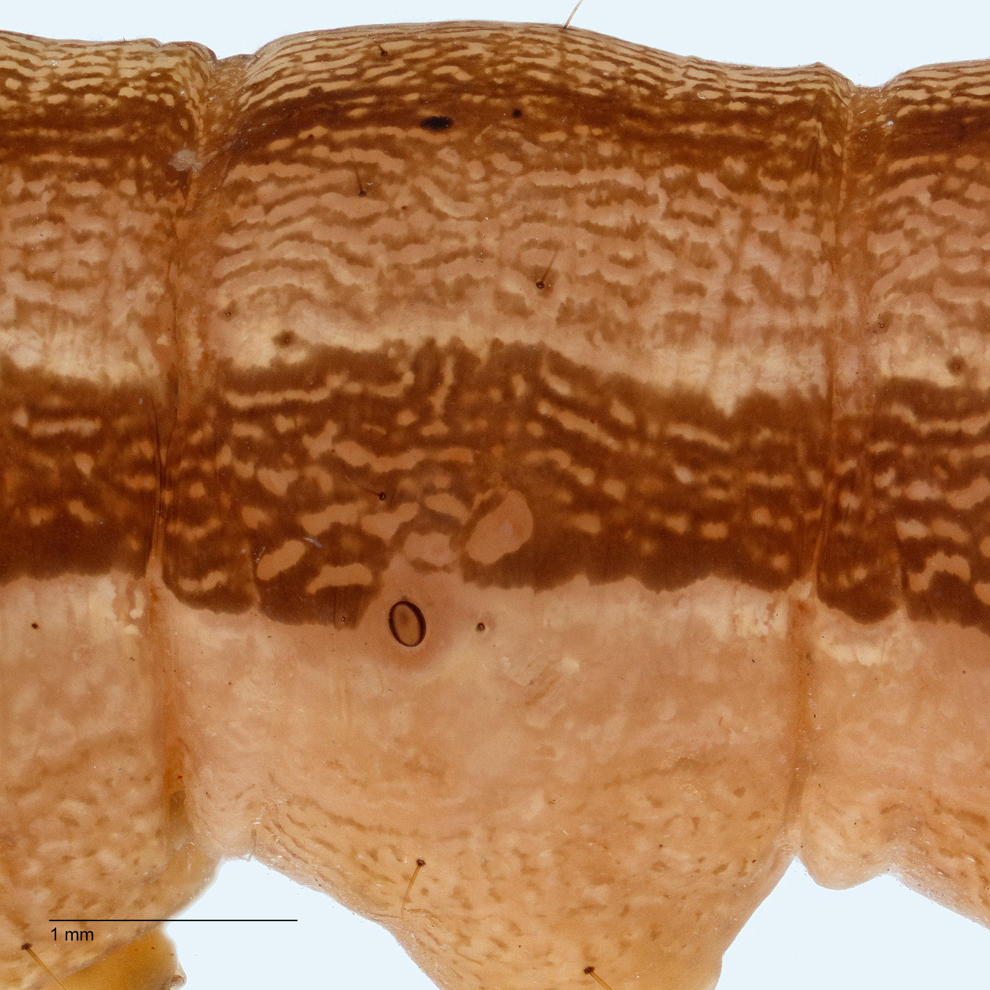 SV group on A1, a smooth cuticle (at 20X) and the muscle attachments between the prolegsprolegs: