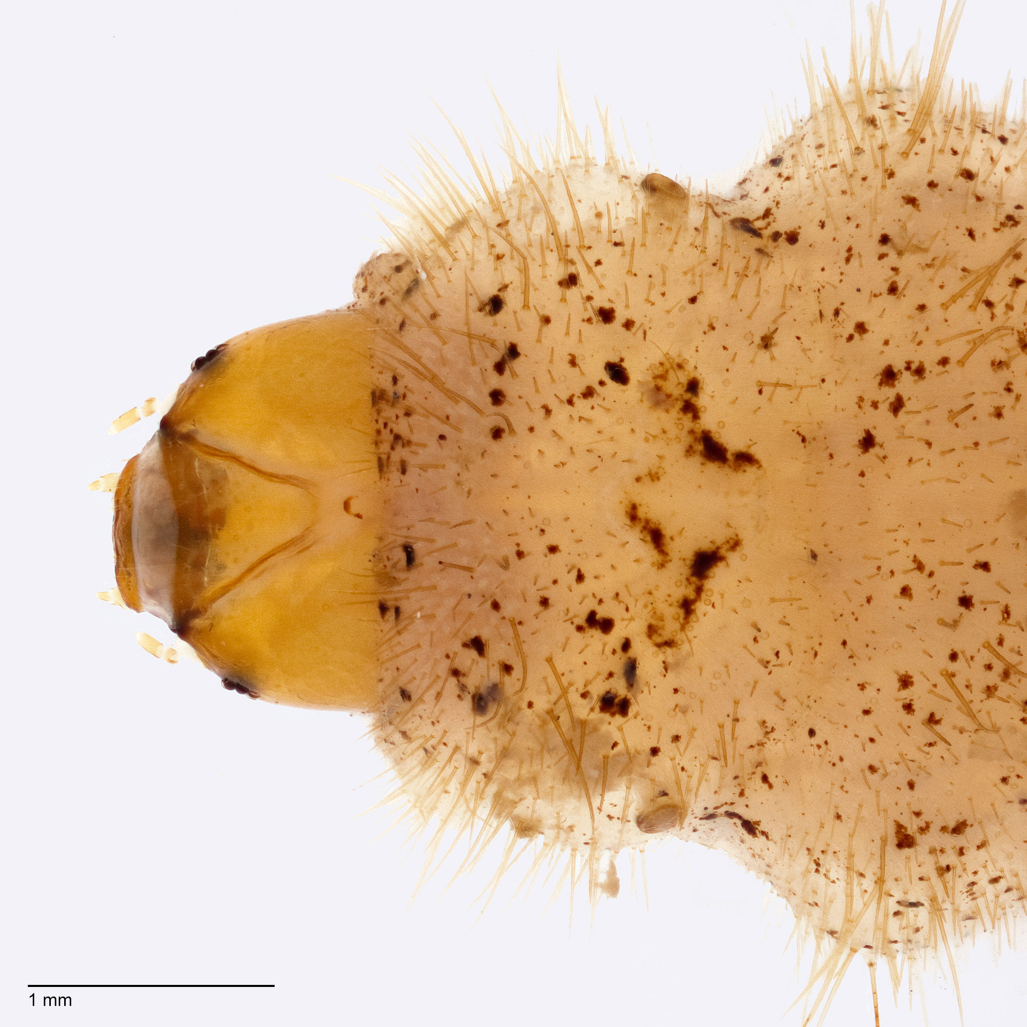 and a honey gland on A7. One example of many interceptions from Philadelphia has the dorsum of A7 darkly pigmented. It is unclear if this is variation or another species. Living larvaelarva: