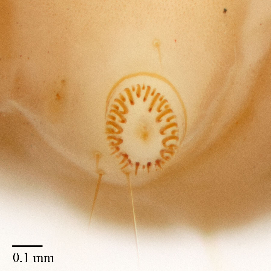 rings around A1-7 may be hard to see in pale specimens; therefore, the presence or absence of the epicranial sutureepicranial suture: