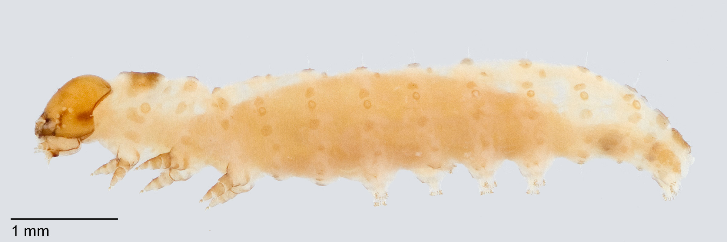 on A1, even if it has a dark spot on D1, and is from Solanum in the Old World, it should be left at subfamily Spilomelinae. Specimens with only one side of the larva unisetoseunisetose: