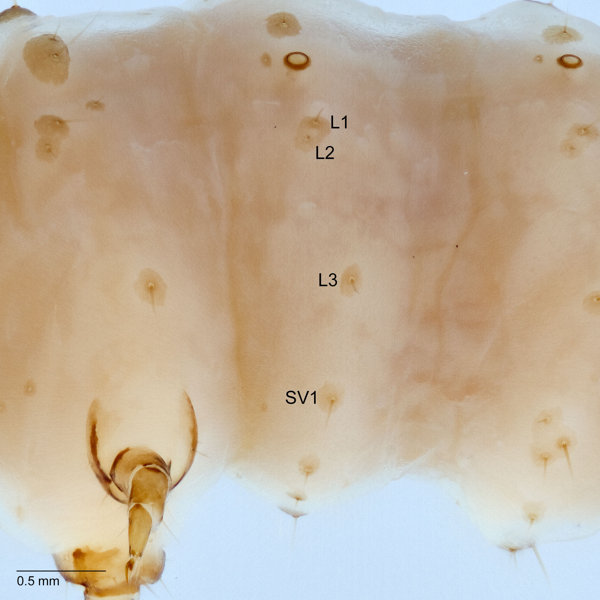 SV group on A1, crescent shaped prespiracular pinaculumpinaculum: