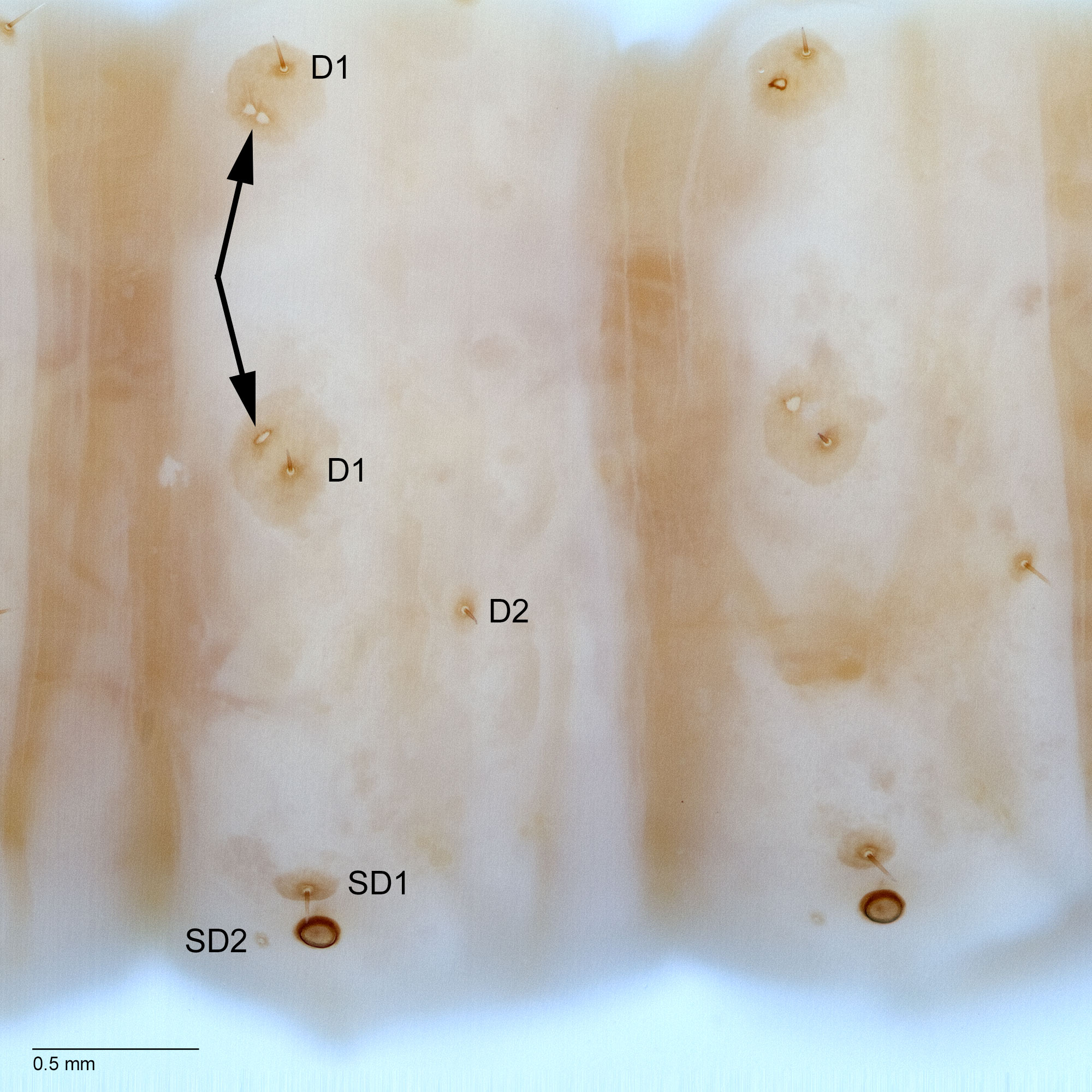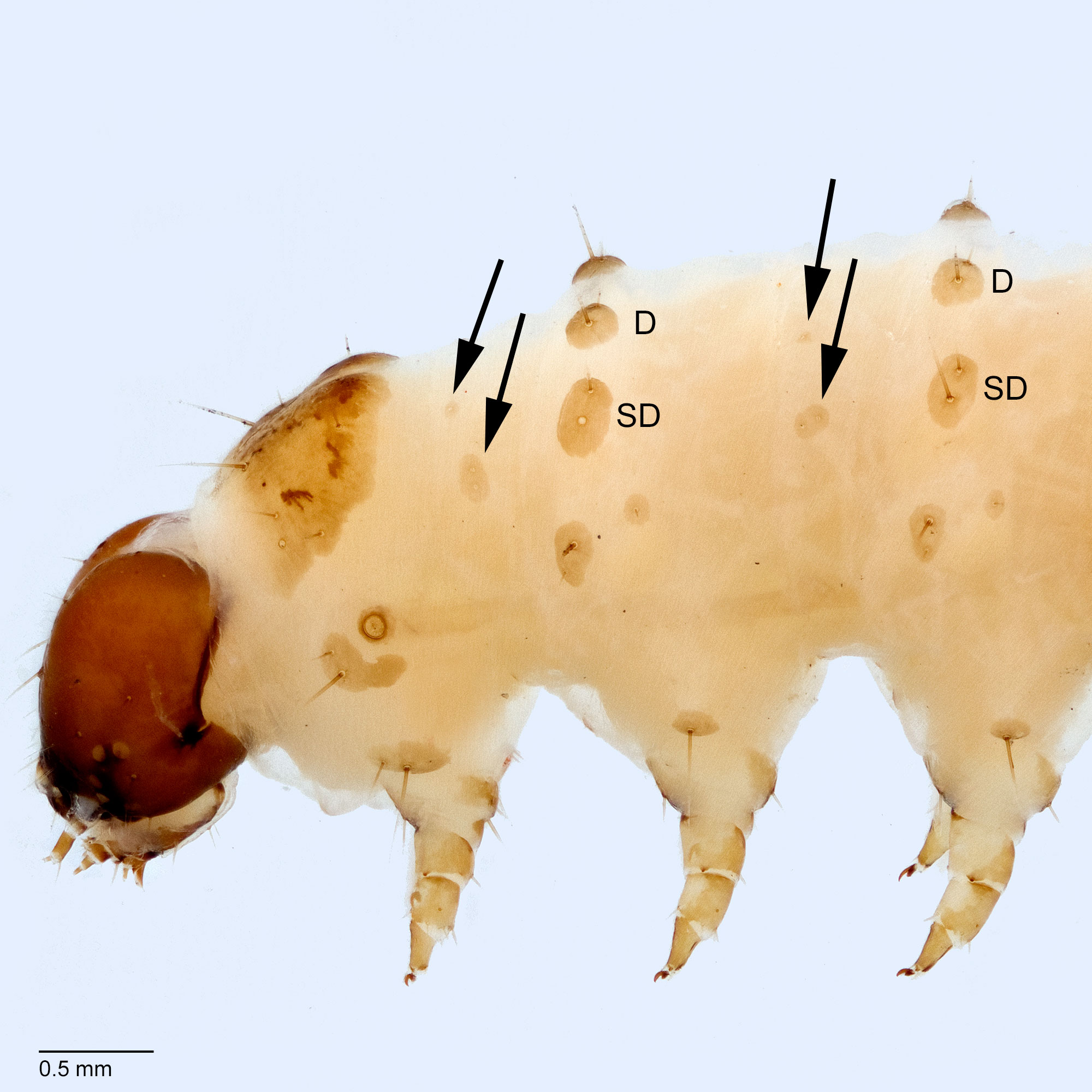 Solis, M. A. 2011. Key to selected Pyraloidea (Lepidoptera) larvae intercepted at U. S. ports of entry: revision of Pyraloidea in "Keys to some frequently intercepted lepidopterous larvae" by Weisman 1986 (updated 2006).). The SD1 pinaculapinaculum: