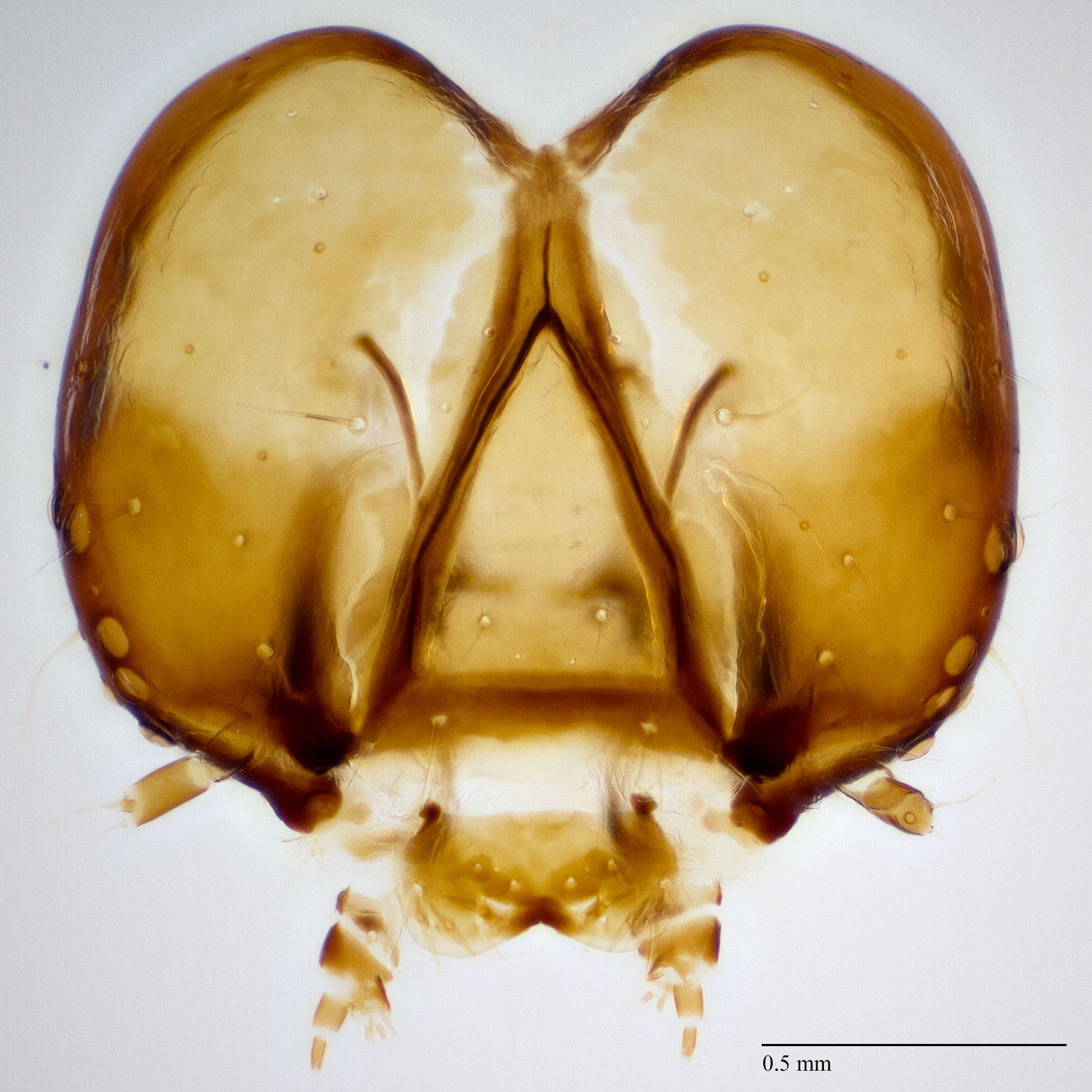 large and raised, perhaps being pigmented in living material. The large diameter of the prothoracic spiracle, compare to the spiracle on A1, seems unusual. The prothoracic shieldprothoracic shield: