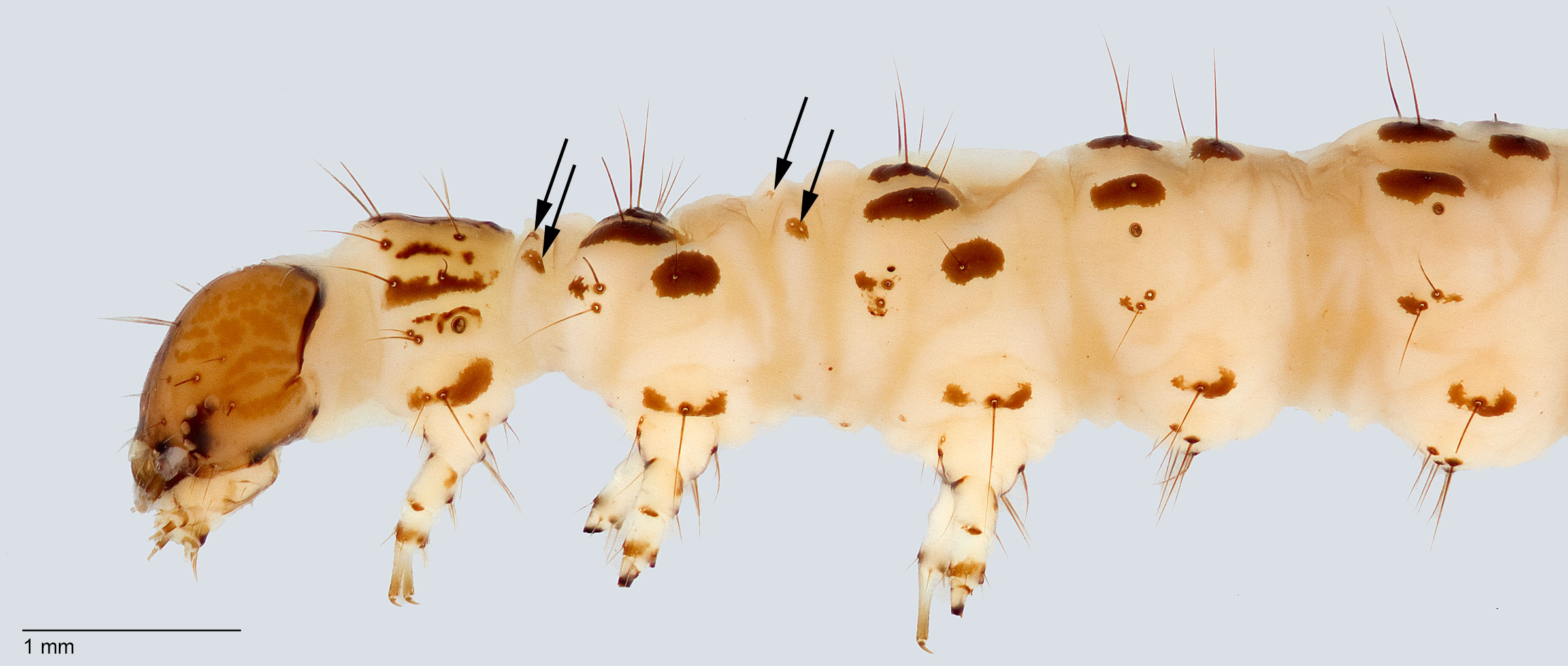below the spiracles), size (less than 20 mm), and the variable number (two or three) of SV setaeseta: