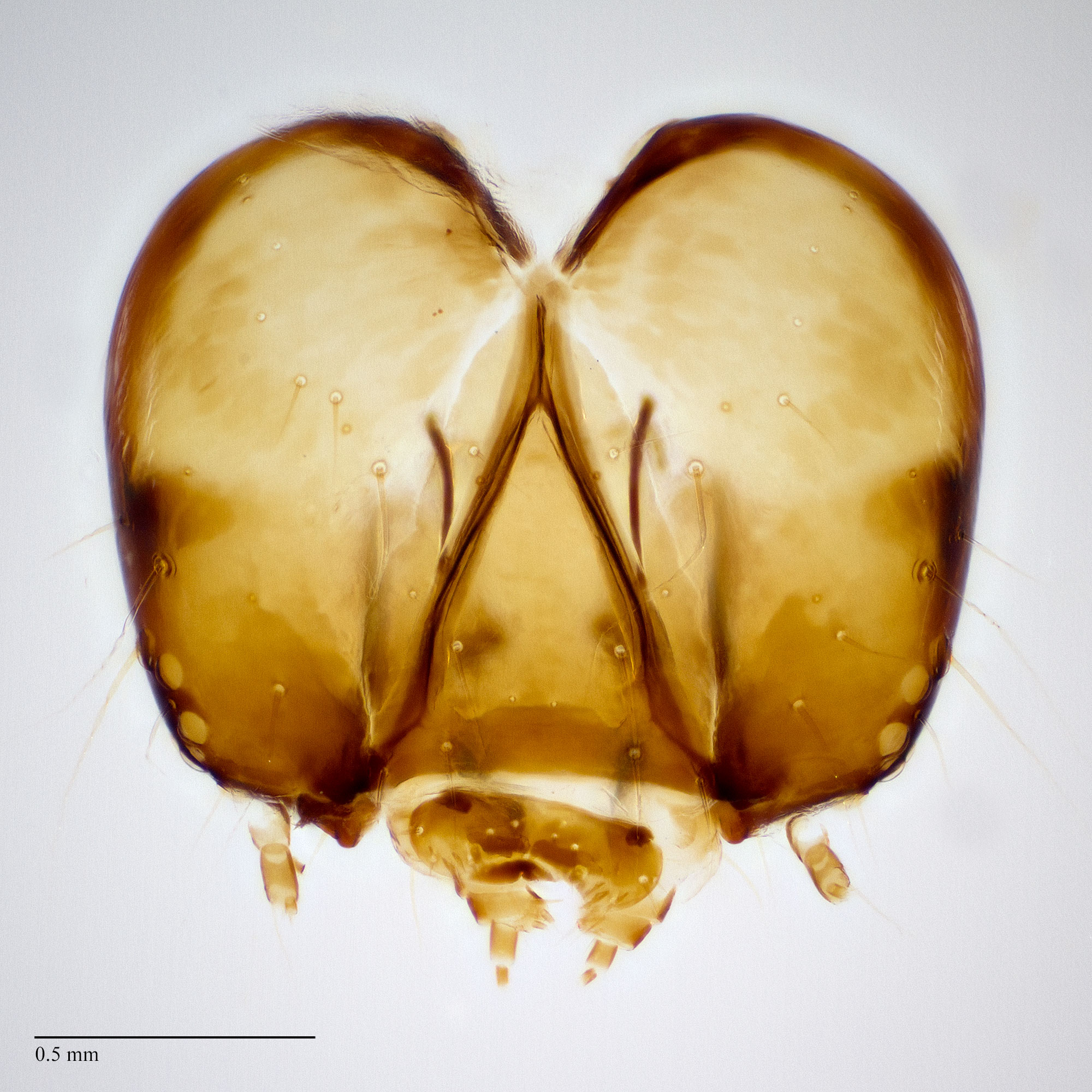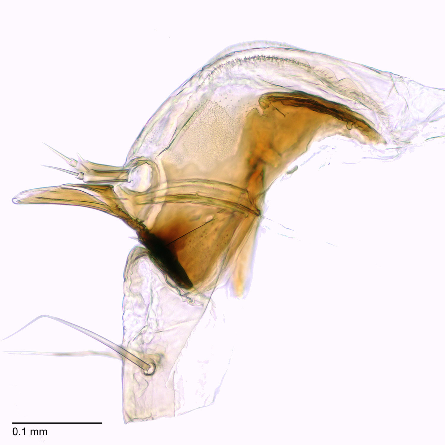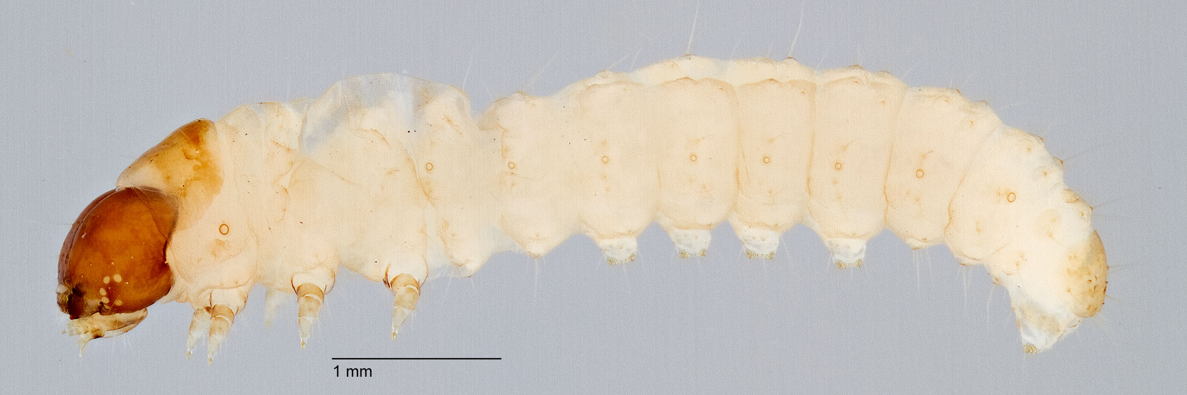 present with 2-10 teeth. Other larval characters include: SD2 on A1-8 highly reduced or appearing absent; SV counts 3:3:2:2:1; spiracle on A8 displaced posteradposterad: