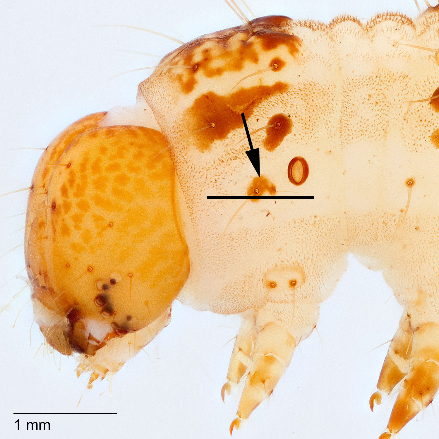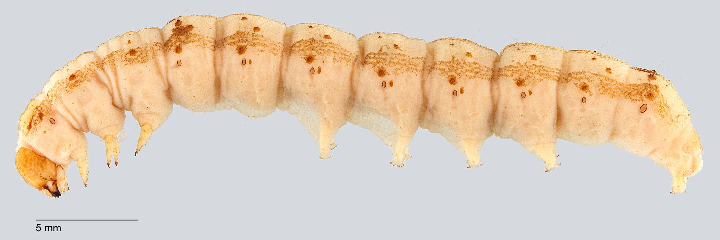 is clearly a middle instar Helicoverpa, but poorly known rare species prevent recognition of the common pests forcing only a generic identification. Helicoverpa sugii has a restricted distribution in Japan and an unknown host range (Yoshimatsu and Takeuchi 2004Yoshimatsu and Takeuchi 2004: