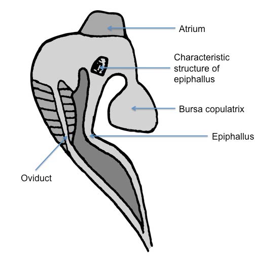 Arion hortensis group: epiphallic structures. (Photo: © Davies(1977) and Forsyth(2009) modified by K. Weigel, University of Florida)