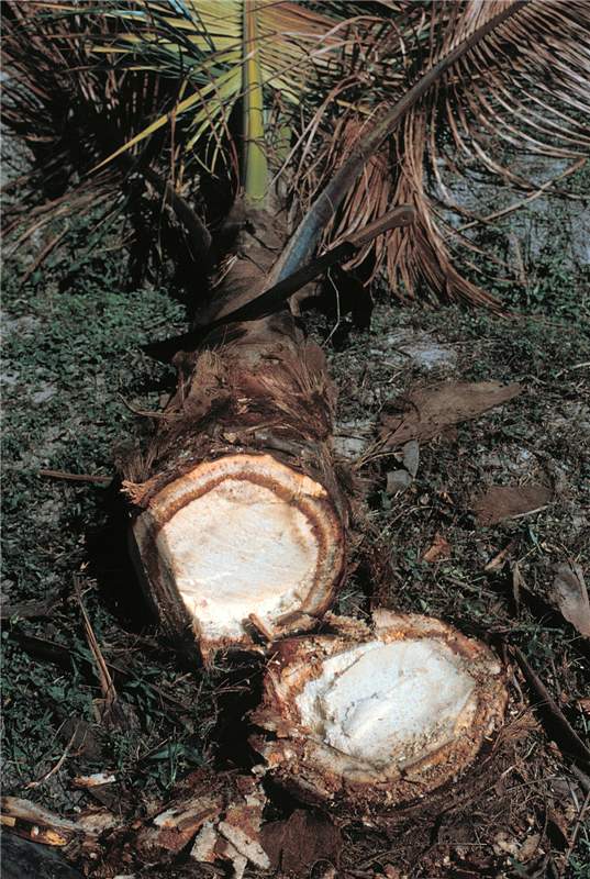 is produced. No "ring" symptom is observed in trunk cross-sections of such palms.