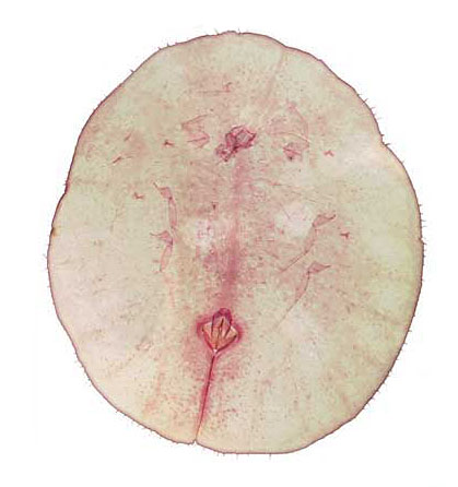 Nothing is known about the field appearance of this species except that it is slightly convex in cross section and older adult females are brown and sclerotized. Based on its morphology, it seems likely that it does not form an ovisac and does not produce wax. Males are known. Occurring on the leaves of the host.