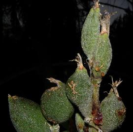 surface relief—distinct, rounded projections that are large relative to the fruit size; tuberculate, verrucose