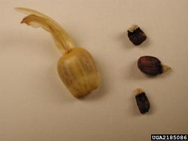 | Shape(s) | conicalconical: 3D shape—cone-shaped, with the point of attachment at the broad end , ellipsoidellipsoid:3D shape—elliptic , globoseglobose: 3D shape—more or less spherical , oblongoblong:2D shape—much longer than broad with nearly parallel sides, corners are rounded , trigonoustrigonous:3D shape—having three faces that meet at distinct angles; triangular in outline , teardrop-shapedteardrop-shaped: 2D shape—widest point is toward one end of the fruit, the other end tapers sharply to a pointed end ![]() |