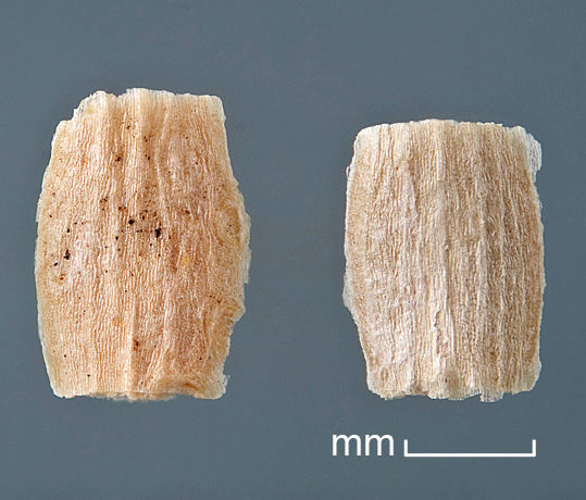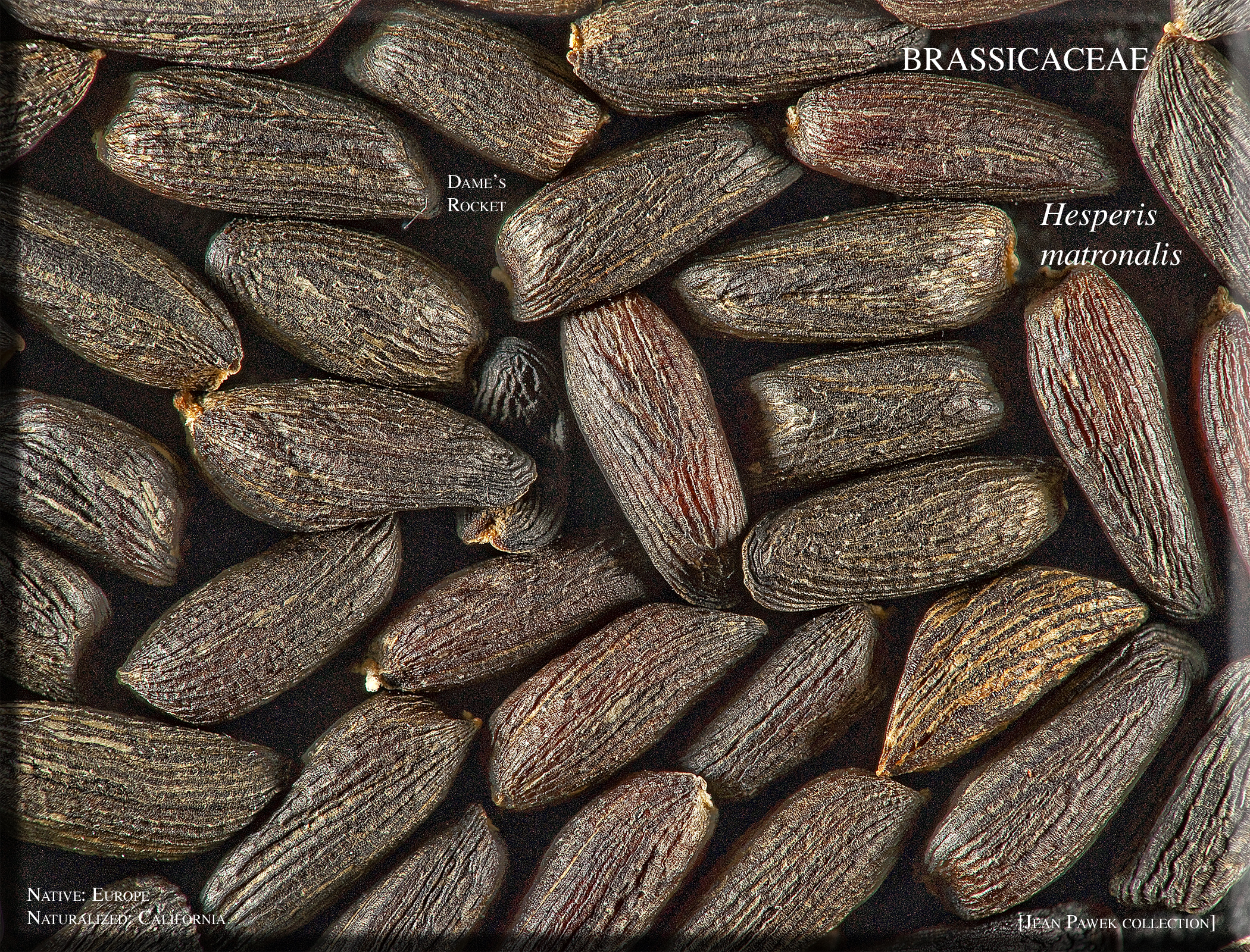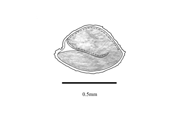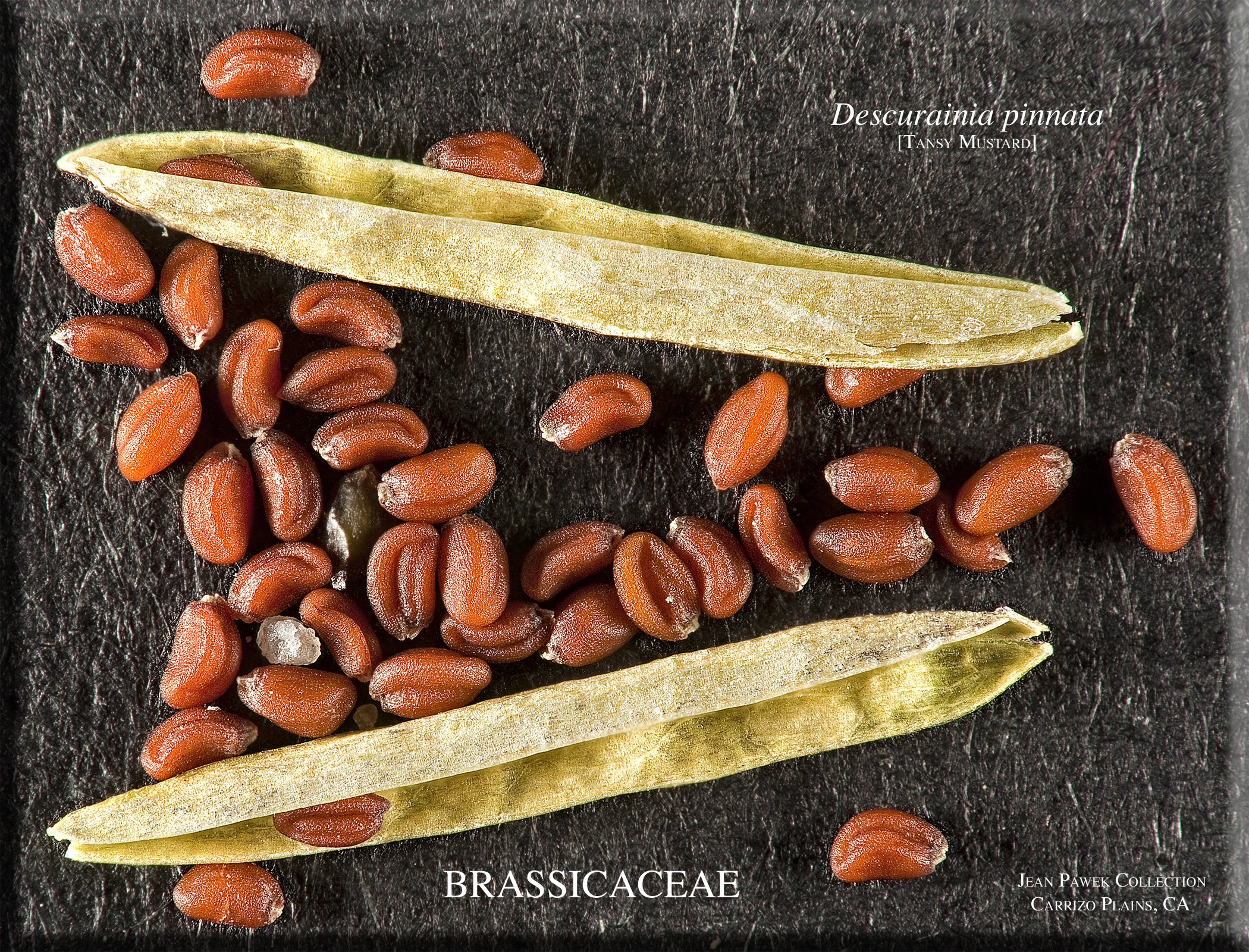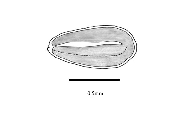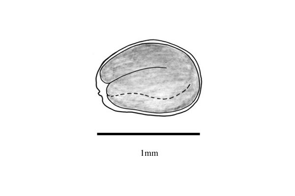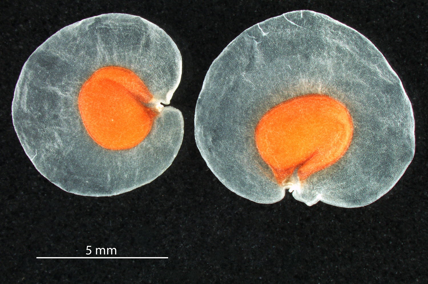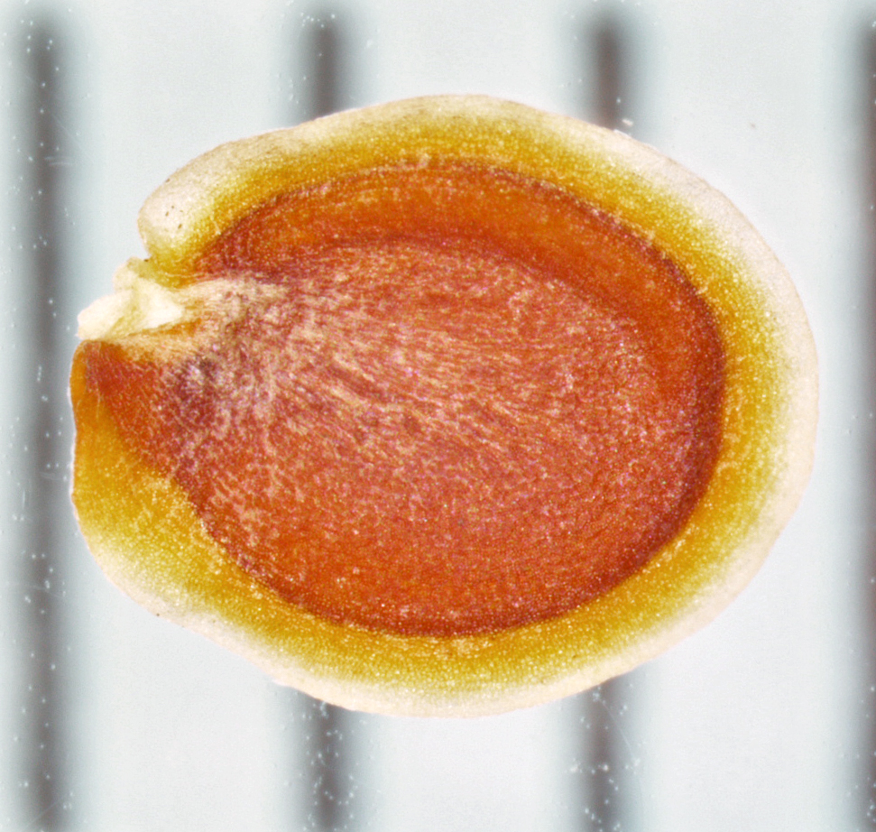 | Unique features | Small seeds of two types, globoseglobose: 3D shape—more or less spherical with minutely reticulatereticulate:surface relief—netted, raised walls or concave grooves forming a net-like surface pattern with flat, concave, or convex interspaces , pittedpitted:surface relief—surface with small depressions in which the areas between the hollows do not take on the appearance of a true reticular net , wartywarty:surface relief—distinct, rounded projections that are large relative to the fruit size; tuberculate, verrucose or wrinkledwrinkled:surface relief—shallow, irregular folds and furrows covering the surface; appearing overall though crumpled and then spread out seed coat or flattened and orbicularorbicular:2D shape—circular in outline, 3D shape—globose to lanceolatelanceolate:2D shape—lance-shaped; much longer than wide, with widest point below the middle, tapering to the apex (compare oblanceolate) in outline, pittedpitted:surface relief—surface with small depressions in which the areas between the hollows do not take on the appearance of a true reticular net or rough seed coat, often winged, with a notched or cleft margin, and with groove or line between outwardly visible cotyledoncotyledon:a primary leaf of the embryo and radicleradicle:the embryonic root of the embryo . Seeds with curvedcurved:(of embryo) linear embryo is curved into an arch or horseshoe with the ends far apart or folded embryos filling the seed coat, visible in the flattened seed type. Seed coat often mucilaginousmucilaginous:resembling mucilage; moist and sticky when wetted. |