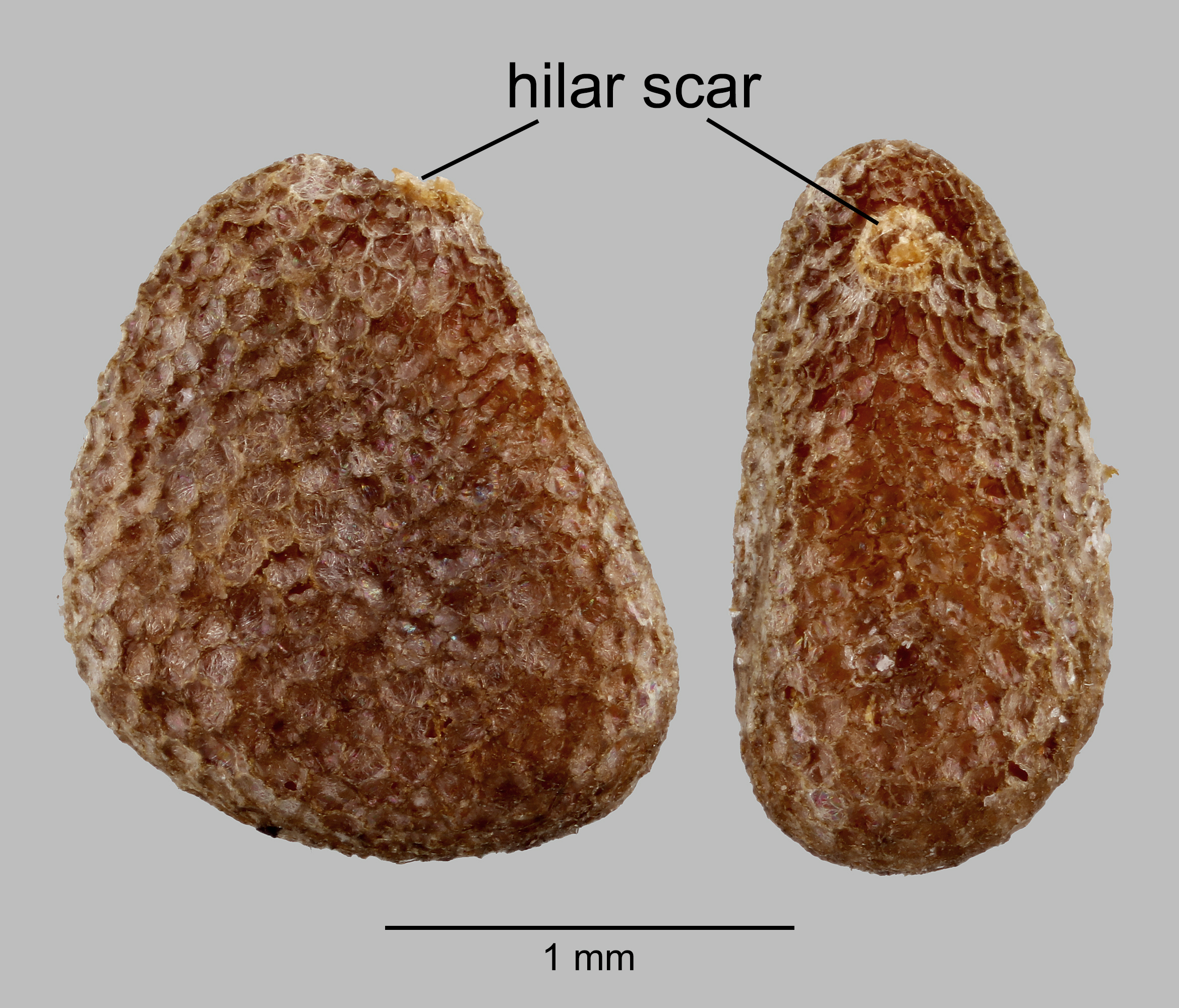 surface relief—distinct, rounded projections that are large relative to the fruit size; tuberculate, verrucose