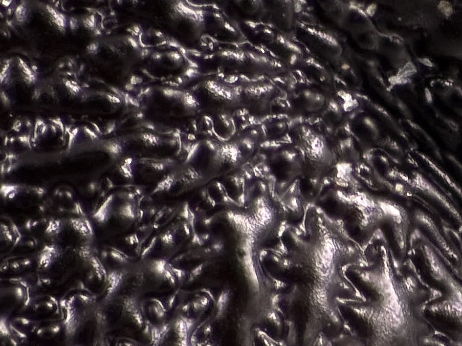 surface relief—covered with irregular raised, hollow granules that give the surface a bubbled appearance