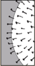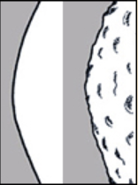 surface relief—surface with small depressions in which the areas between the hollows do not take on the appearance of a true reticular net