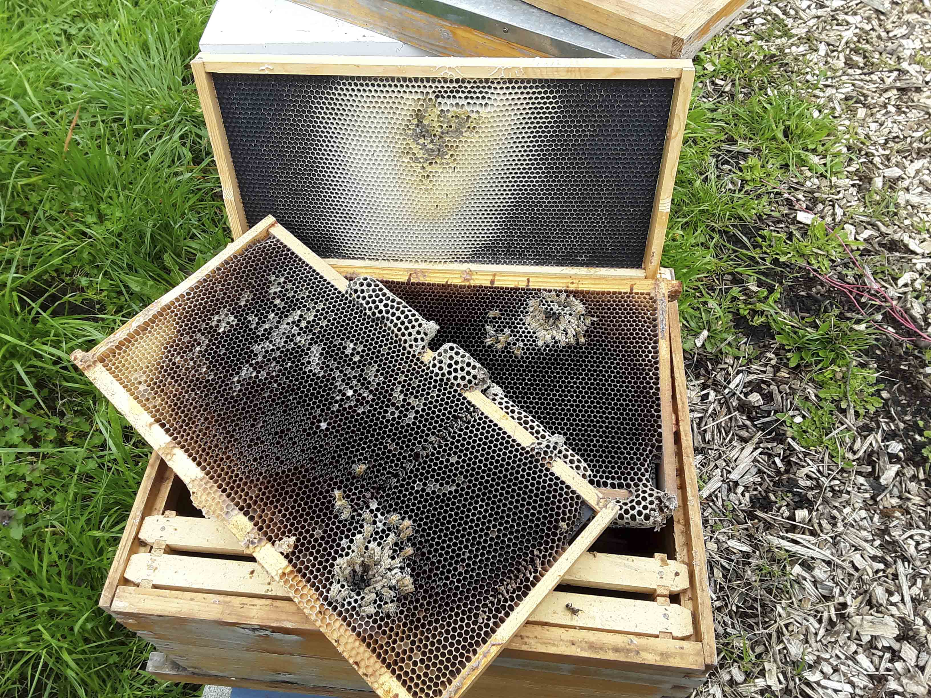 Deadout of a strong colony due to starvation: photo by Kerry Clark