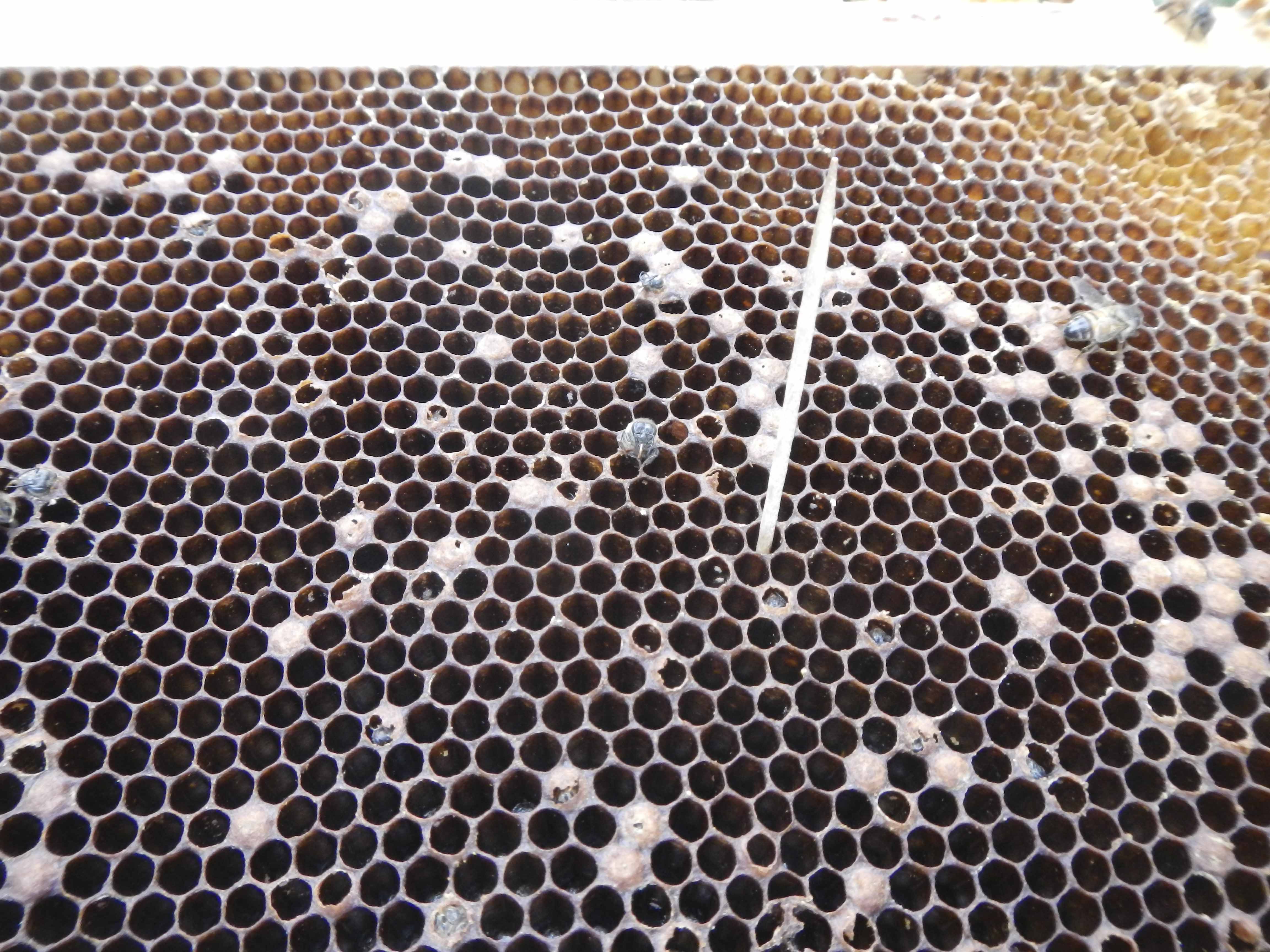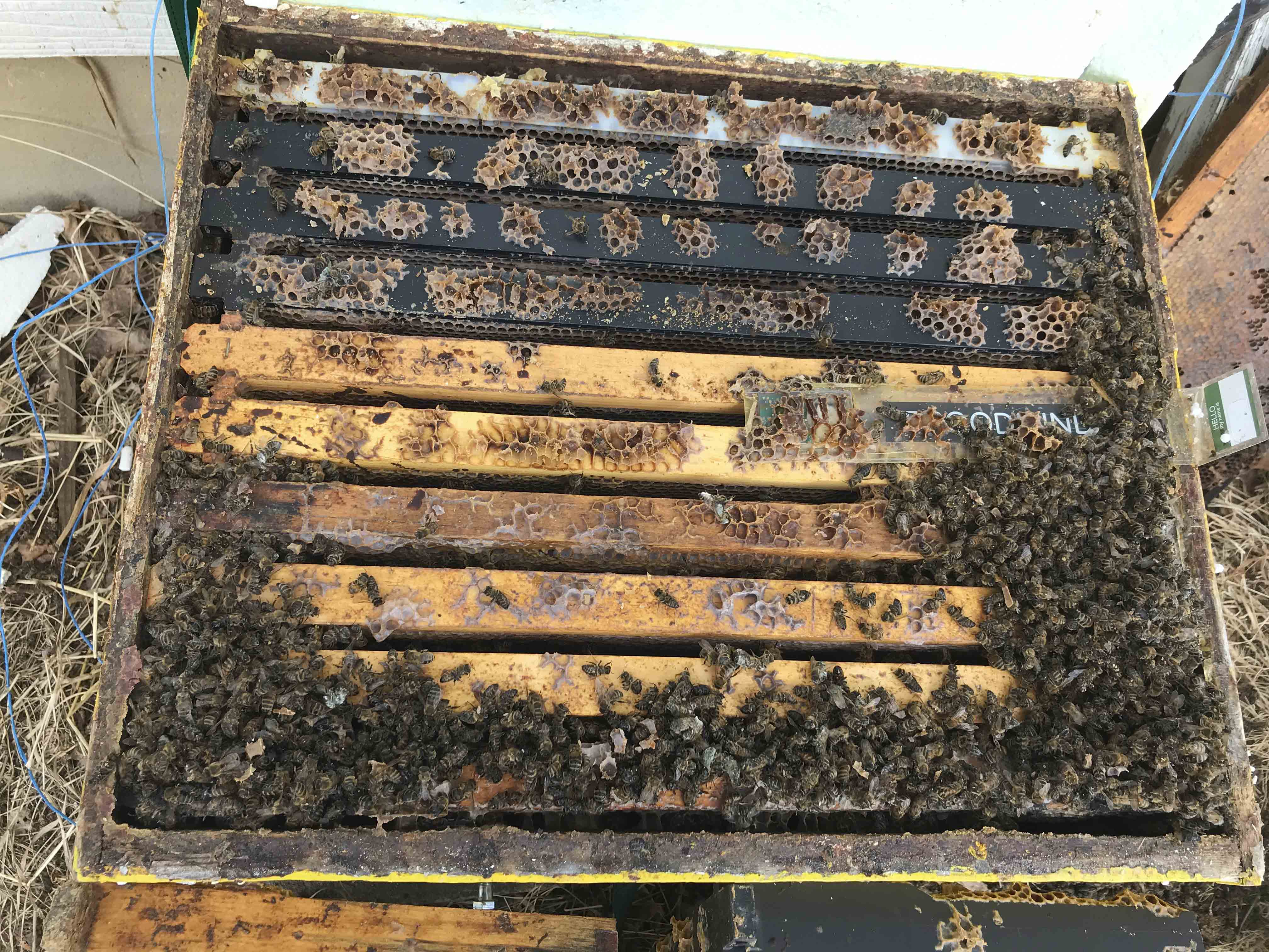 Deadout cluster likely due to freezing because of too few bees; photo by Dewey M. Caron