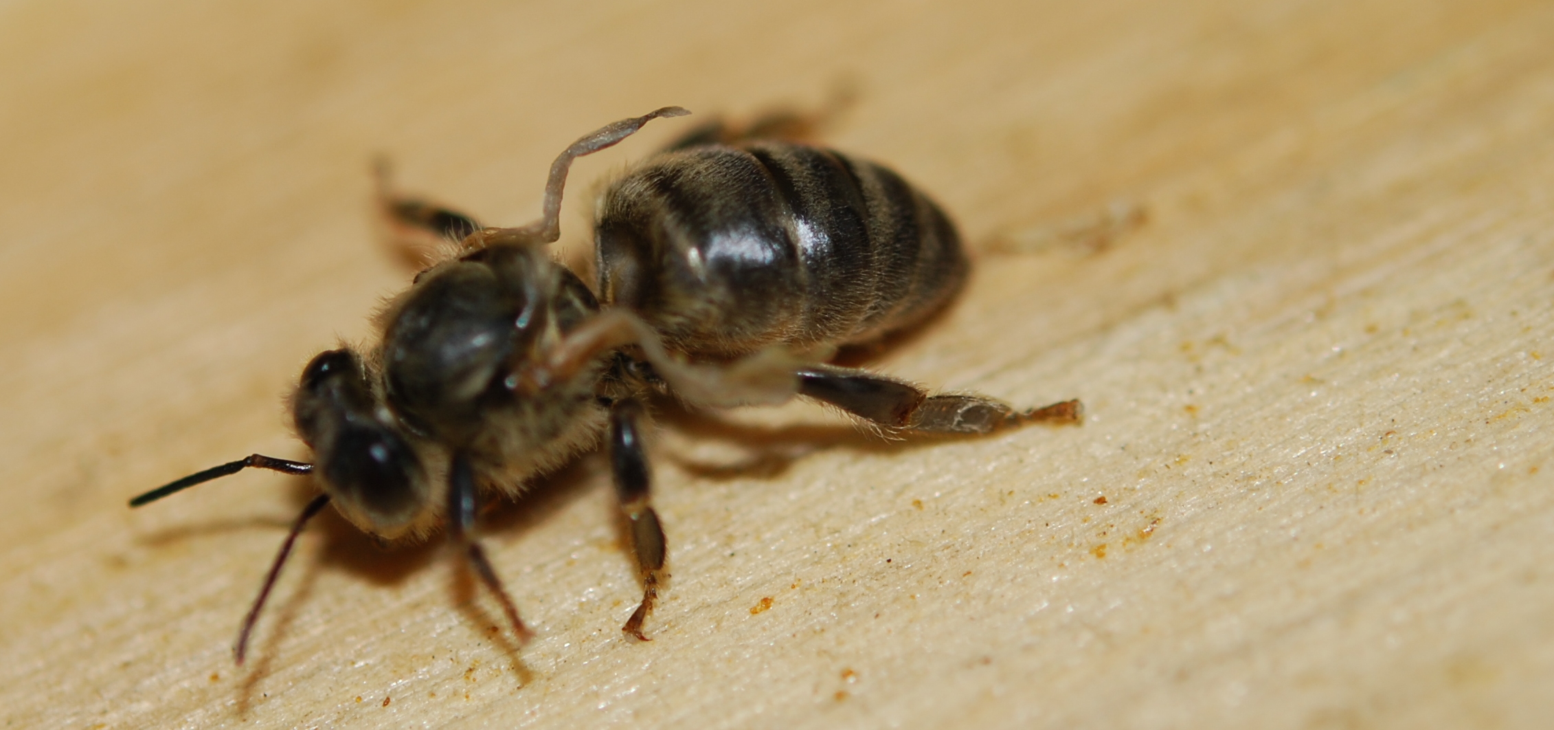 DWV is considered the most harmful of bee viruses. In viral analysis by the Bee Informed Partnership, it is found in greater than 90% of samples. Some strains are more detrimental than others. DWV is an iflavirus related to sacbrood virus and slow bee paralysis virus. It is transmitted by varroa mites. High virus levels in brood results in adults (queen, worker, or drone) with deformed wings. Infected brood lack visible signs of infection. Varroa mites apparently transmit or enhance replication of this virus; the virus quickly reaches epidemic levels, resulting in sudden collapse of colony in late fall or failure of colony to successfully overwinter.